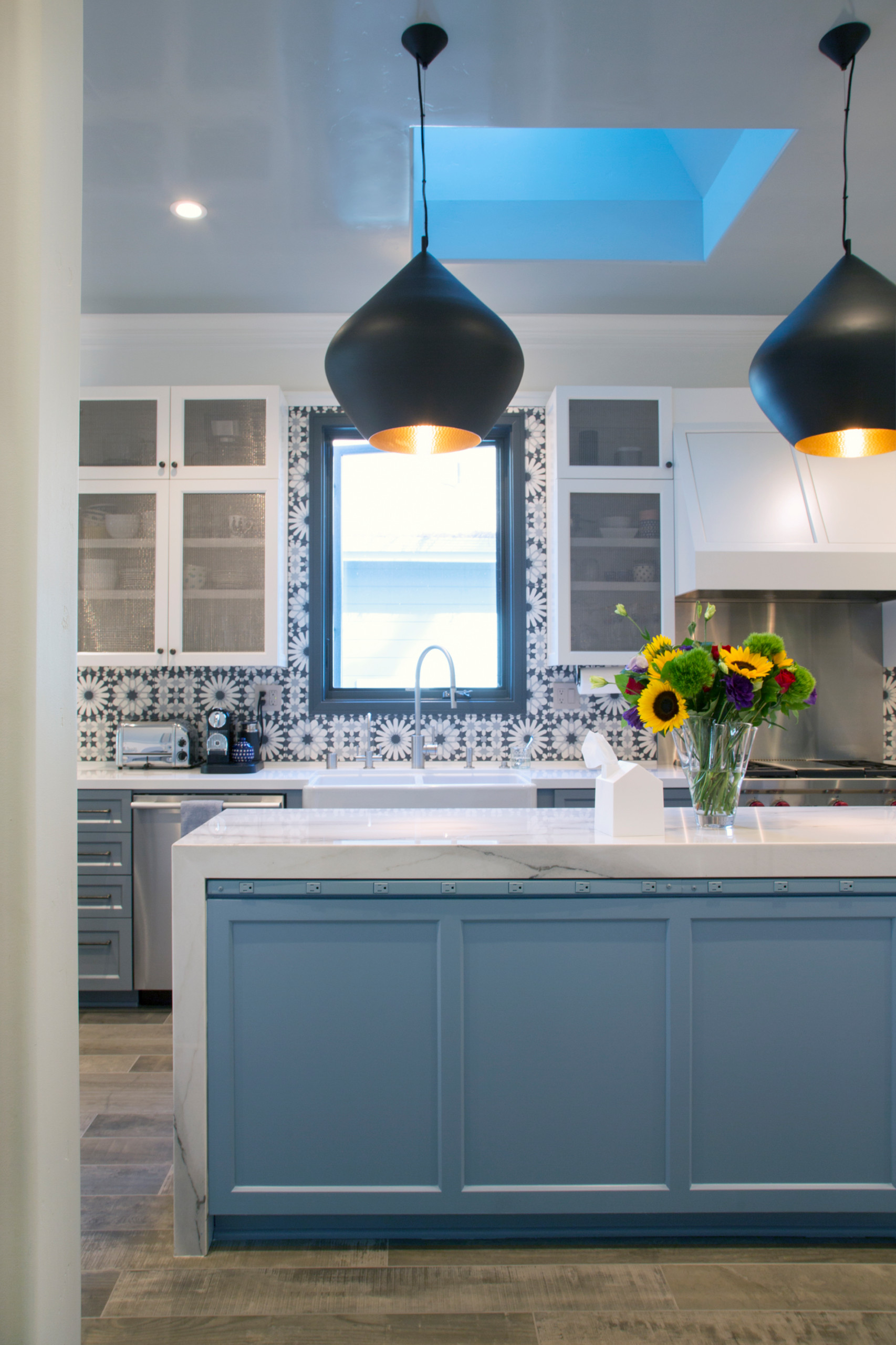 Another striking feature of the new kitchen is the cement tile accent wall that runs the length of the main floor. Martha fell in love with the pattern of the handcrafted Eastern Promise tile designs by Martyn Lawrence Bullard for Ann Sacks and alternated three of them: Fez, Marrakesh and Tangier. The tiles are handmade in Morocco. “Oddly enough, the pattern on the cement tiles reminds me of Victorian tin ceiling tiles,” Martha says.