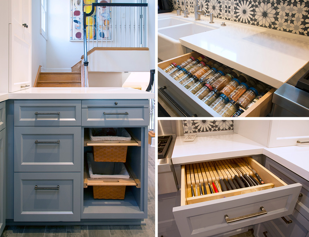 “All of the storage is so well-thought-out that there is a place for everything and then some,” Martha says. “It is so easy to cook, because all of my materials are so easily accessible.” She worked closely with Pamela Pennington on the details, such as having a wood knife holder with prescribed slots, a spice drawer and pullout drawers for fruit and bread.
