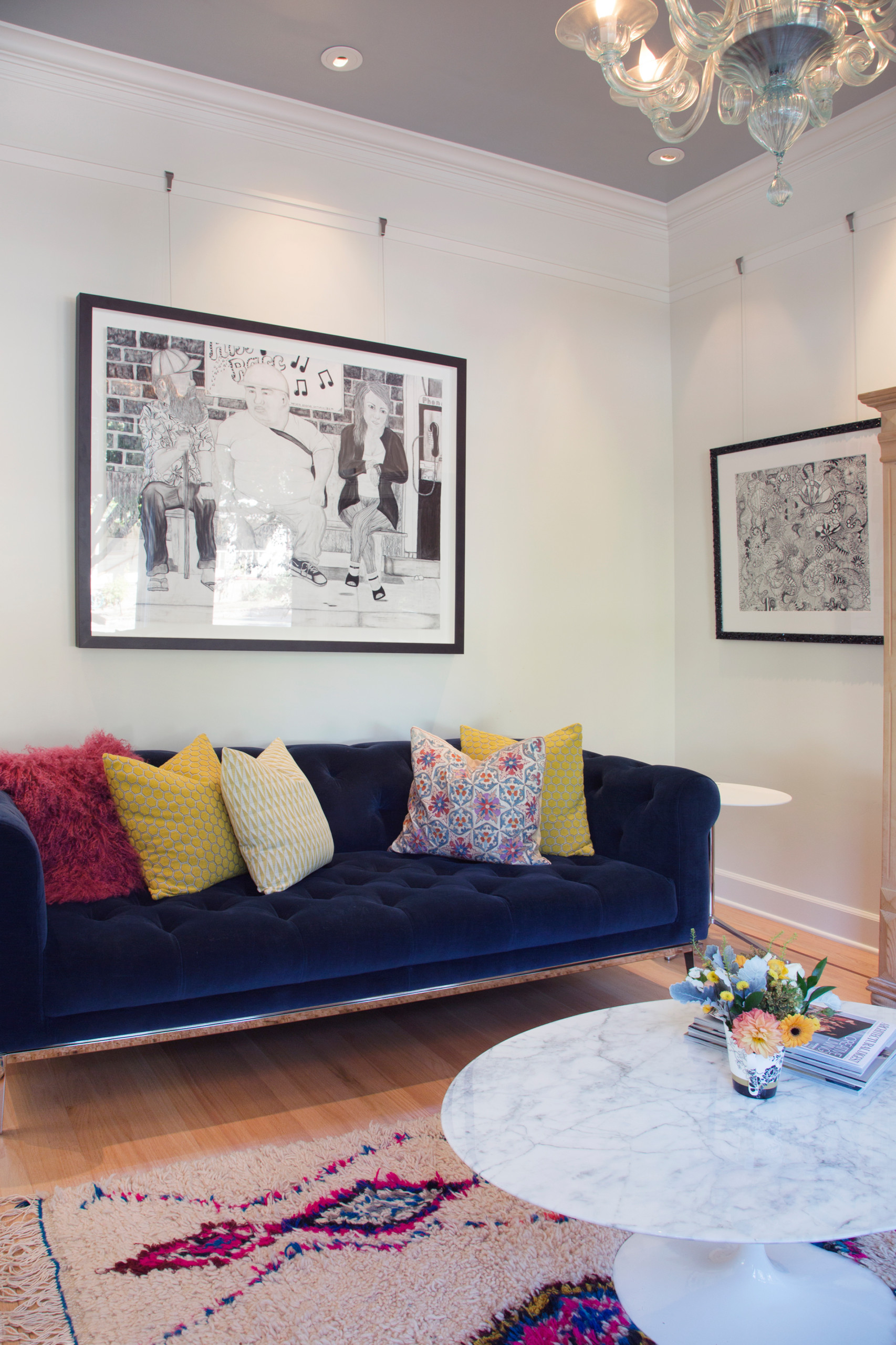 The couple added a picture rail from Gallery System and use it to display and occasionally swap out Isabel’s original artwork. New ceiling can lights were also added.