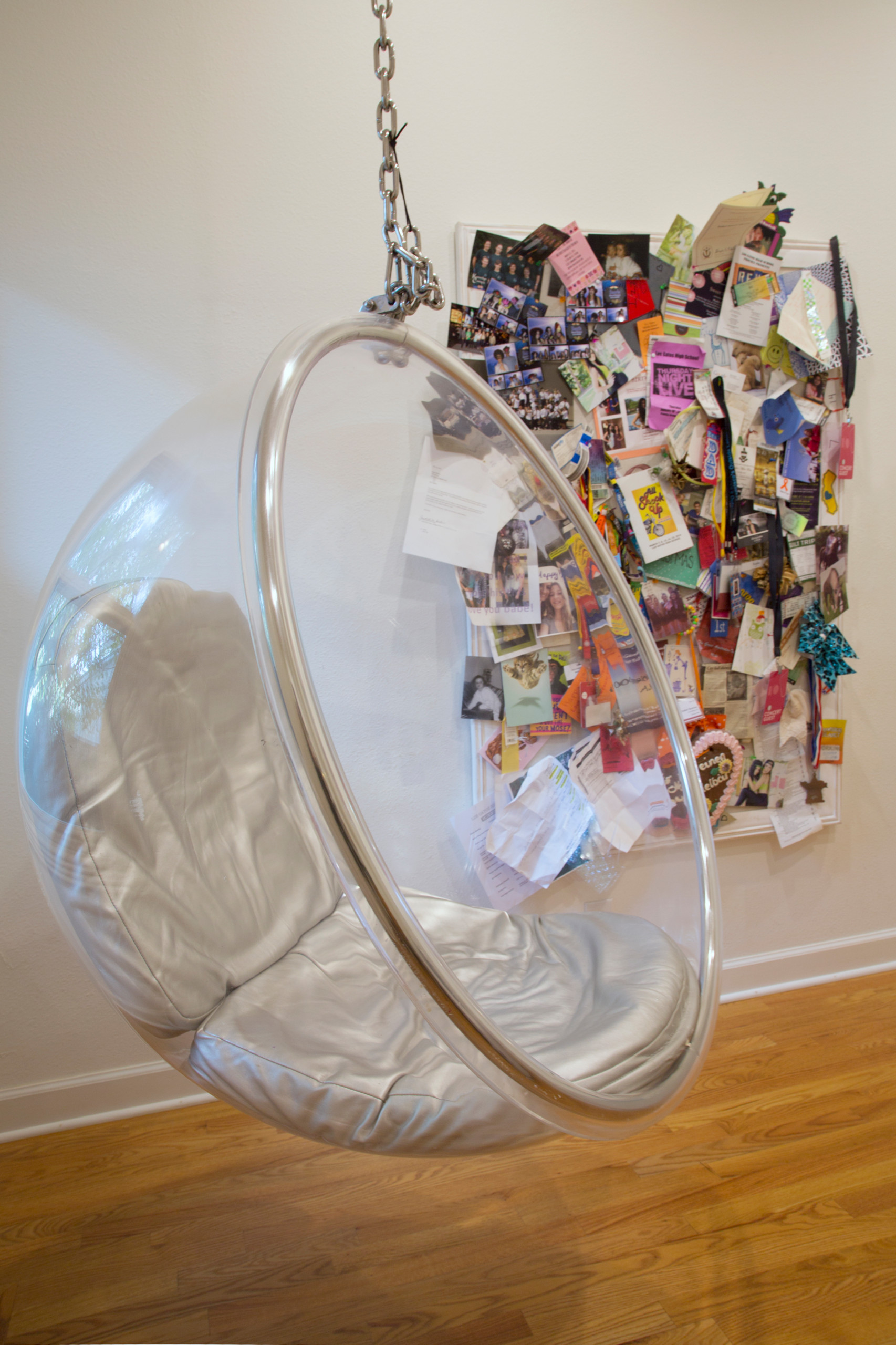 The room of 19-year-old Isabel features a hanging bubble chair and a large bulletin board, which corrals mementos.