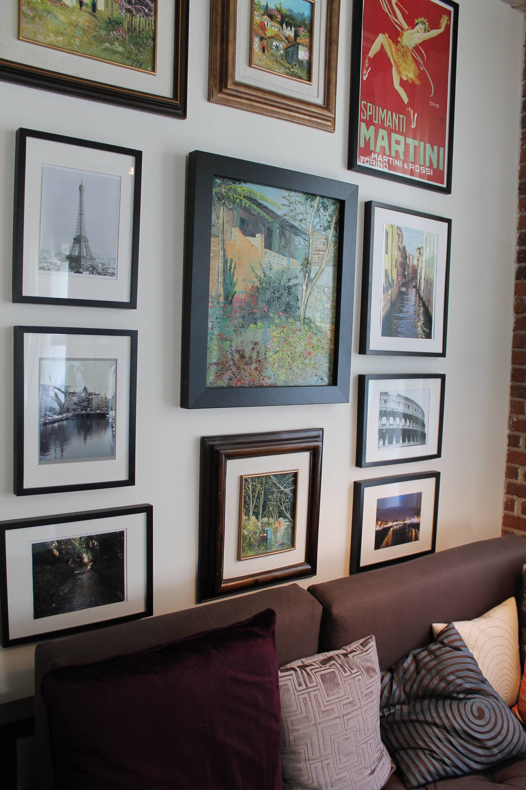 Genie's gallery wall stretches nearly to the ceiling. "Everything in the house reflects my lifestyle and travel experiences. It all has a personal touch," she says. "Many of the pictures, artifacts and original paintings were handed down to me from my mother."