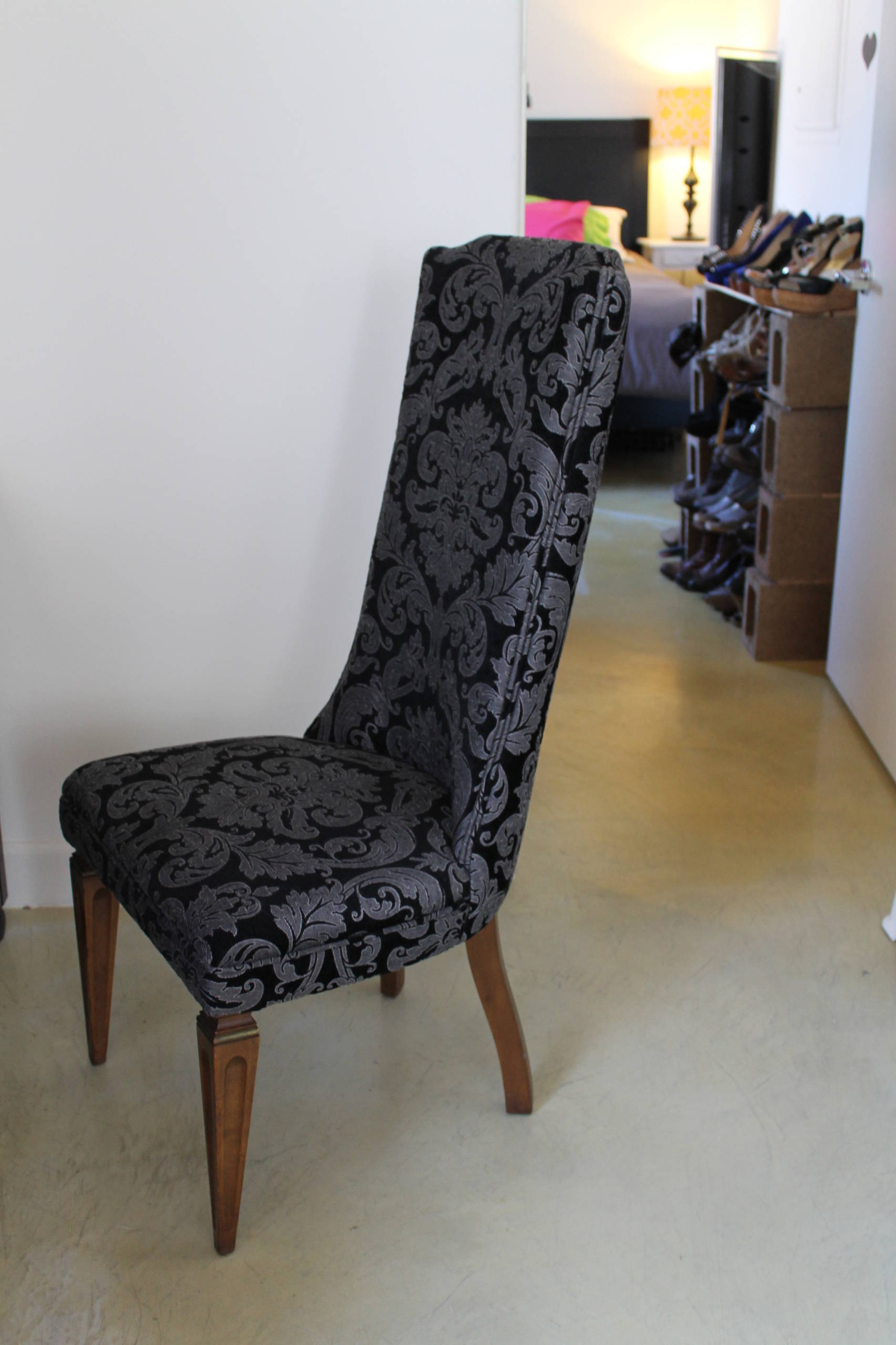 It's hard to imagine, but this vintage desk chair was once quite dowdy. A textured damask fabric now reveals its Hollywood Regency lines. "Finding an excellent yet inexpensive business to reupholster my furniture is my latest steal," Genie says.