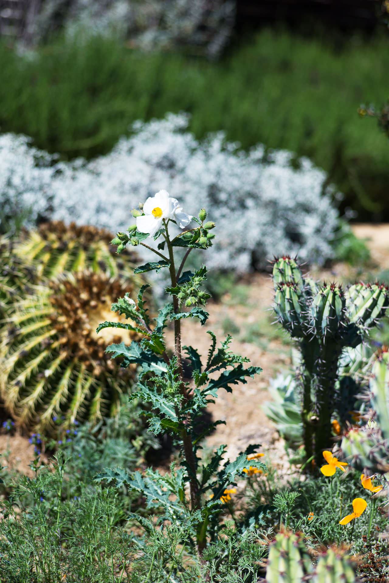 “I wanted something that was completely Californian,” Hessing says of the planting; a variety of native California buckwheats form the base of his planting plan. These low-maintenance, wildlife-friendly plants produce white flowers that turn to a red shrubby brown later in the season, complementing the rusty machine parts he incorporated in the art installation. (You can just see a glimpse of the art in the far-right corner of the previous photo.)