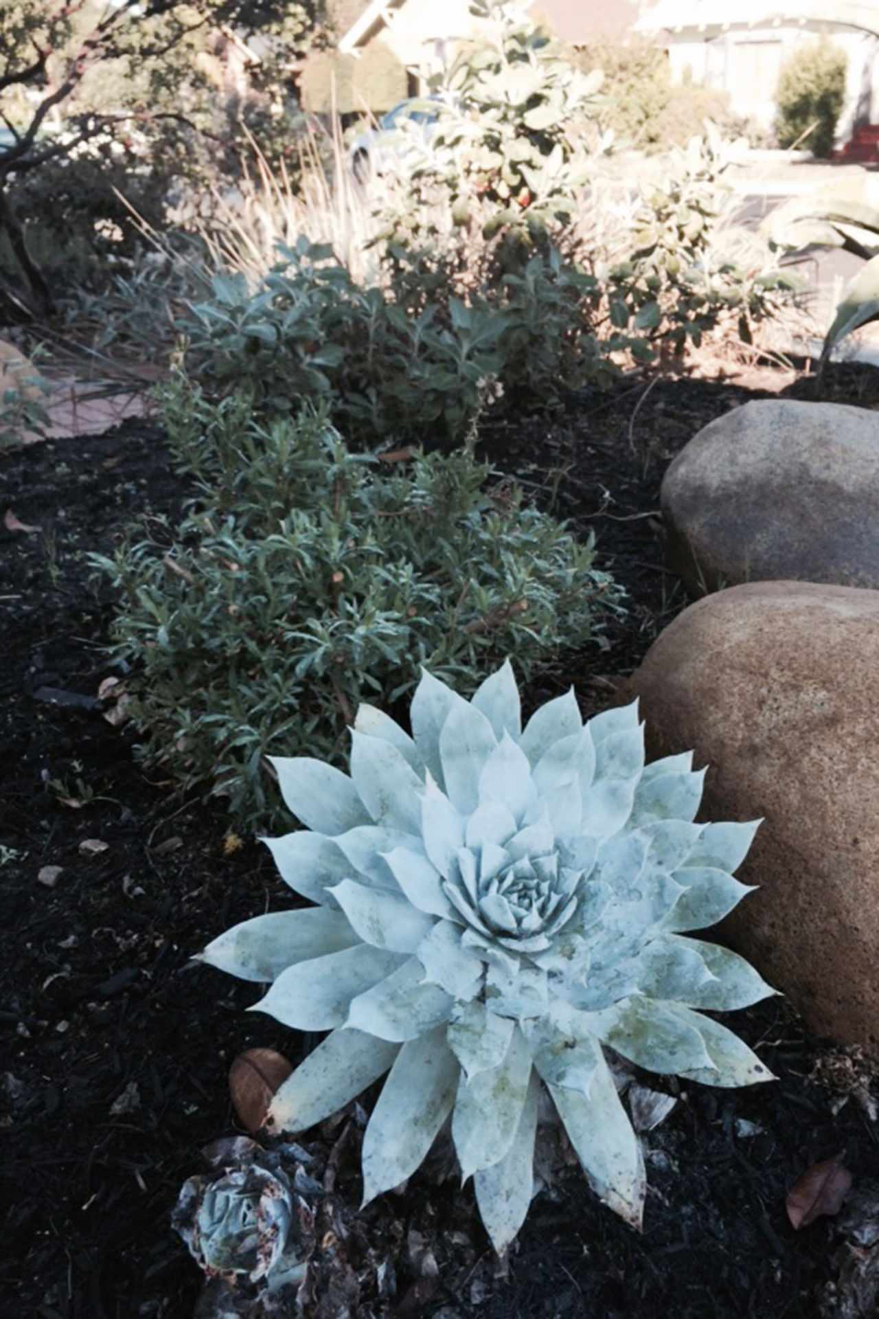 Andrew Chaves’ time spent working with the LA Conservation Corps to restore the natural habitat of coastal bluffs inspired his coastal front garden’s original design. “I kind of wanted to do the same thing,” he says. He planted seeds that had been collected locally and that attract rare local wildlife, including seacliff buckwheat (Eriogonum parvifolium), which the endangered El Segundo butterfly uses as a food source.