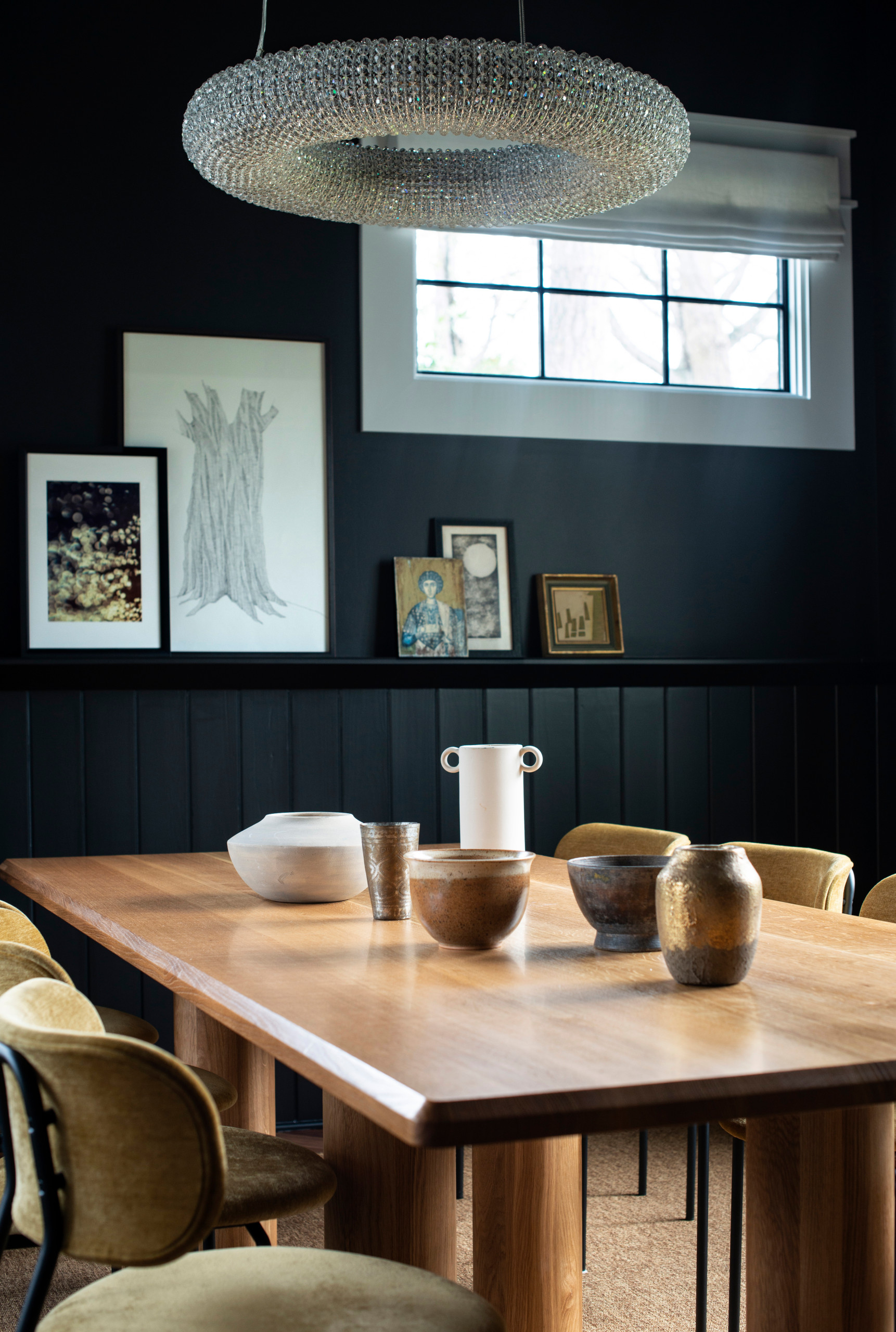 Homeowners’ request. A globally inspired eclectic dining room where family and friends could gather on special occasions. “They wanted a room that was warm, welcoming and filled with unique treasures that we sourced or they inherited along the way,” designer Danielle Chiprut says.