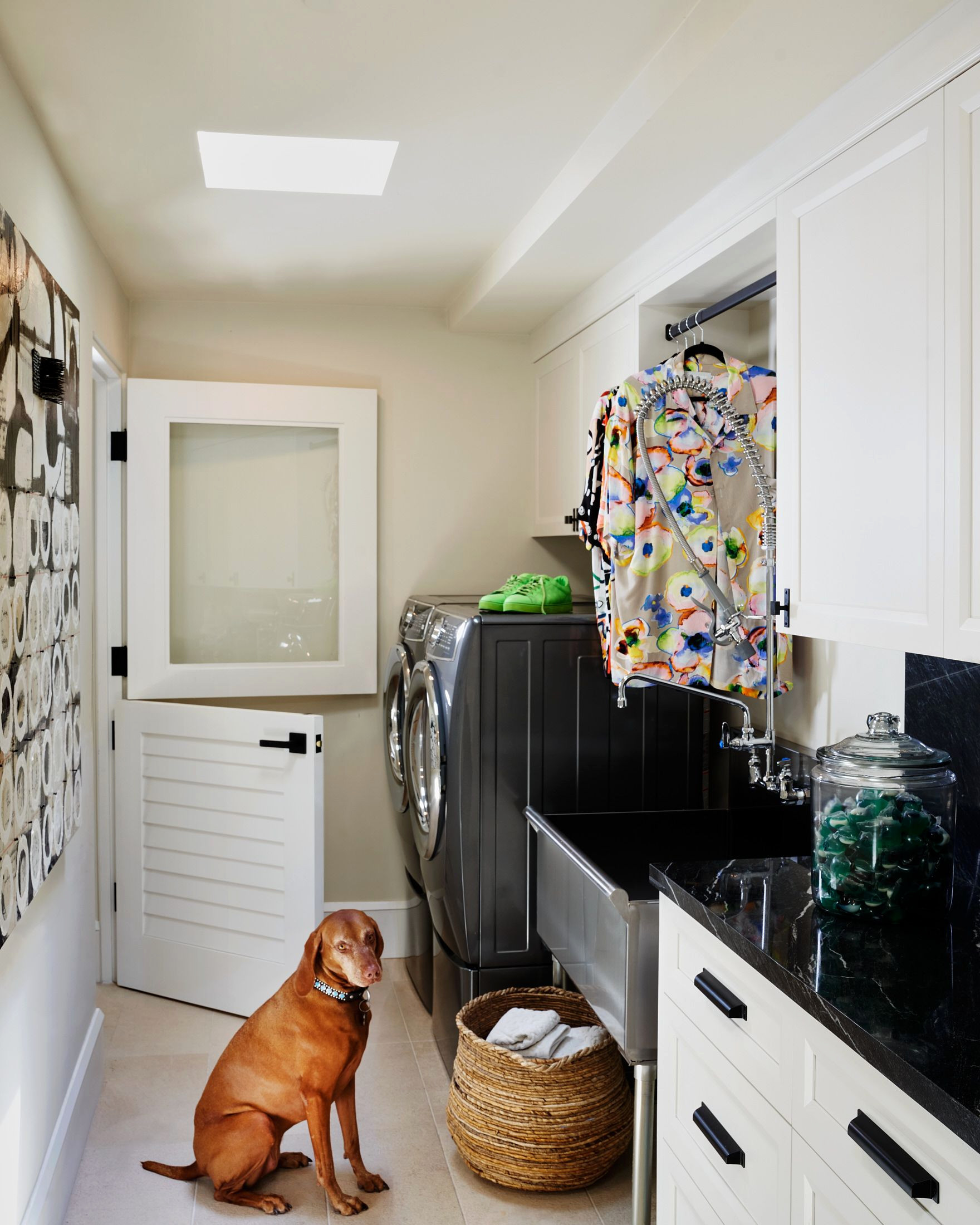 Special features. “Adding a Dutch door serves to keep the dogs contained while we can keep an eye on them,” Rodgers says. “We also used a large commercial stainless steel sink, which works well for washing dogs or paint buckets in addition to laundry.”