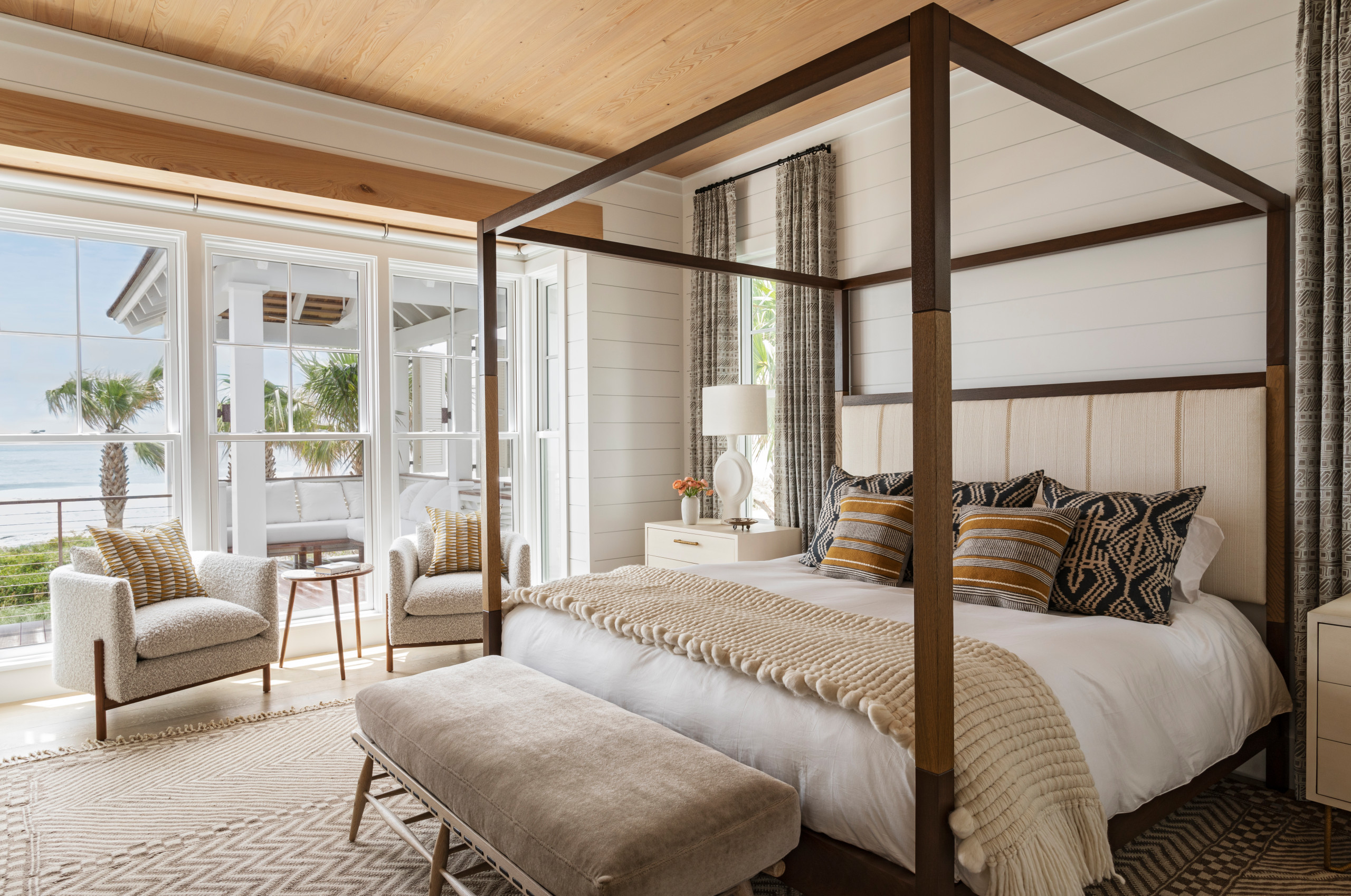 Main feature. “The layout and design were created to ensure that the clients could have full views of the ocean while in the room,” Payzant says. “This meant laying out the location of the bed and windows so that the clients could see the ocean while in the room reading or from the bed.”