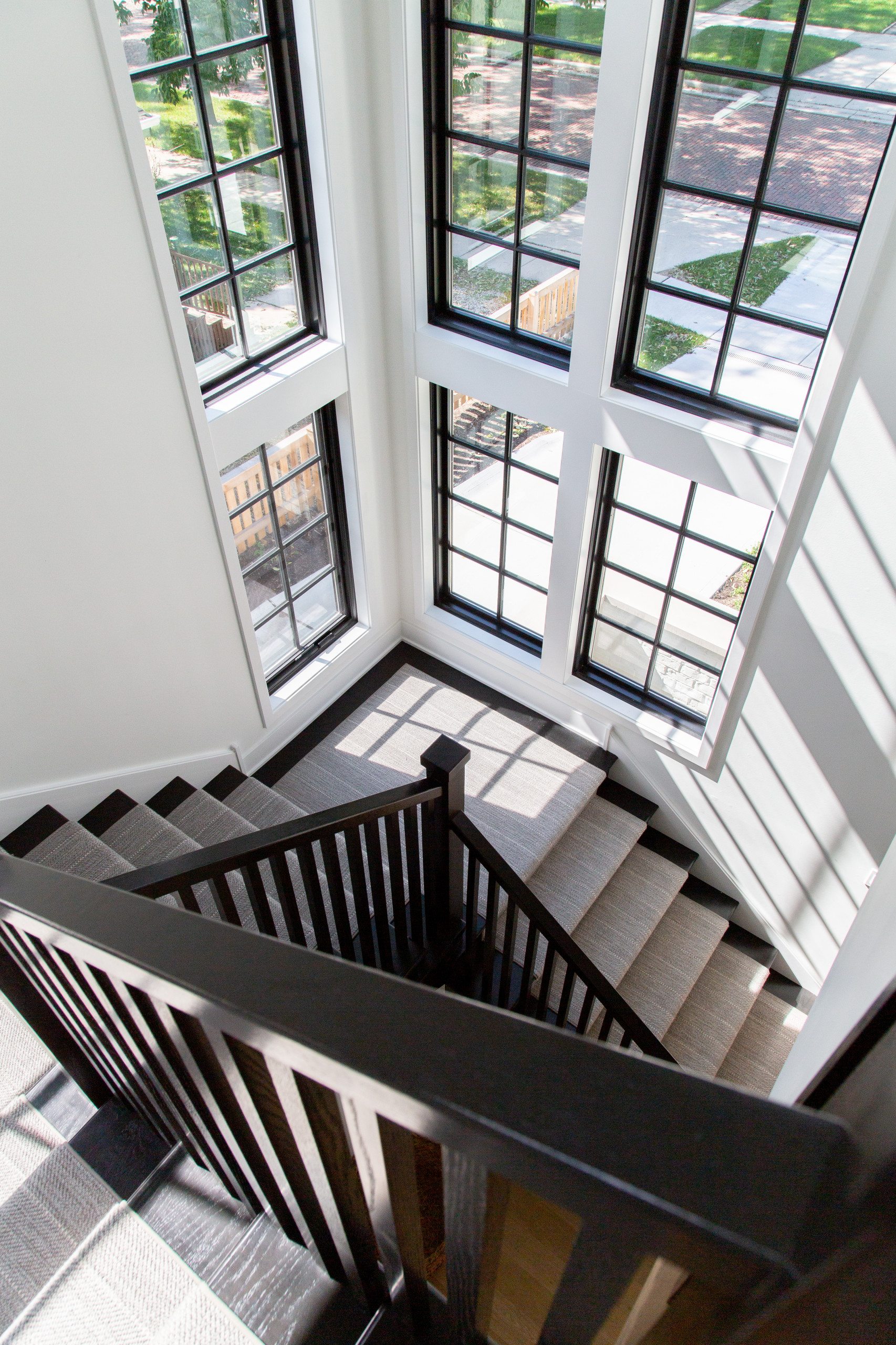 The numerous windows leading upstairs provide ample natural light, accentuating the ebony-stained handrail, balusters and stair treads. “We wanted a lot of windows, so that stairwell is a stair tower. It’s very cozy on a cold afternoon because it’s west-facing,” Elise says.