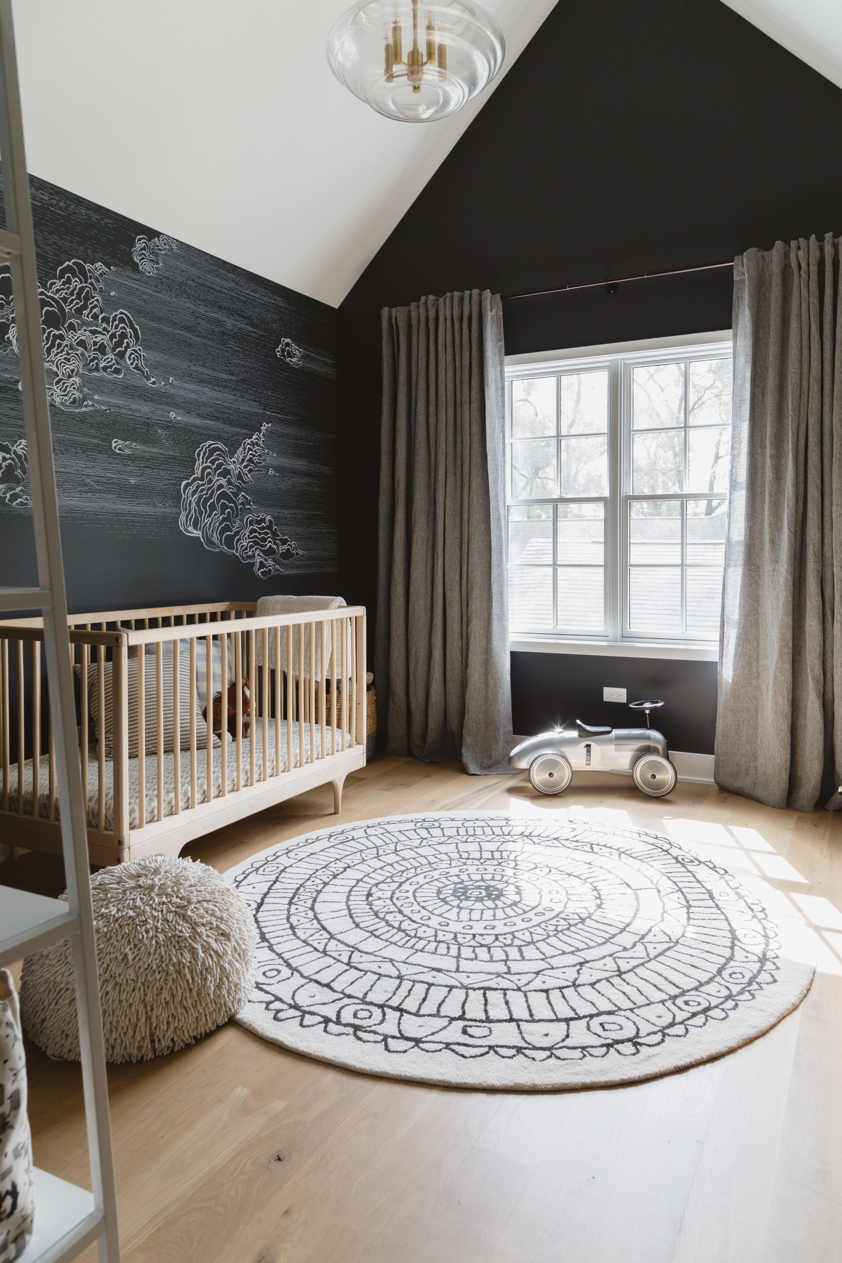 Washington five-light pendant: Hudson Valley Lighting; Caravan crib: Kalon Studios