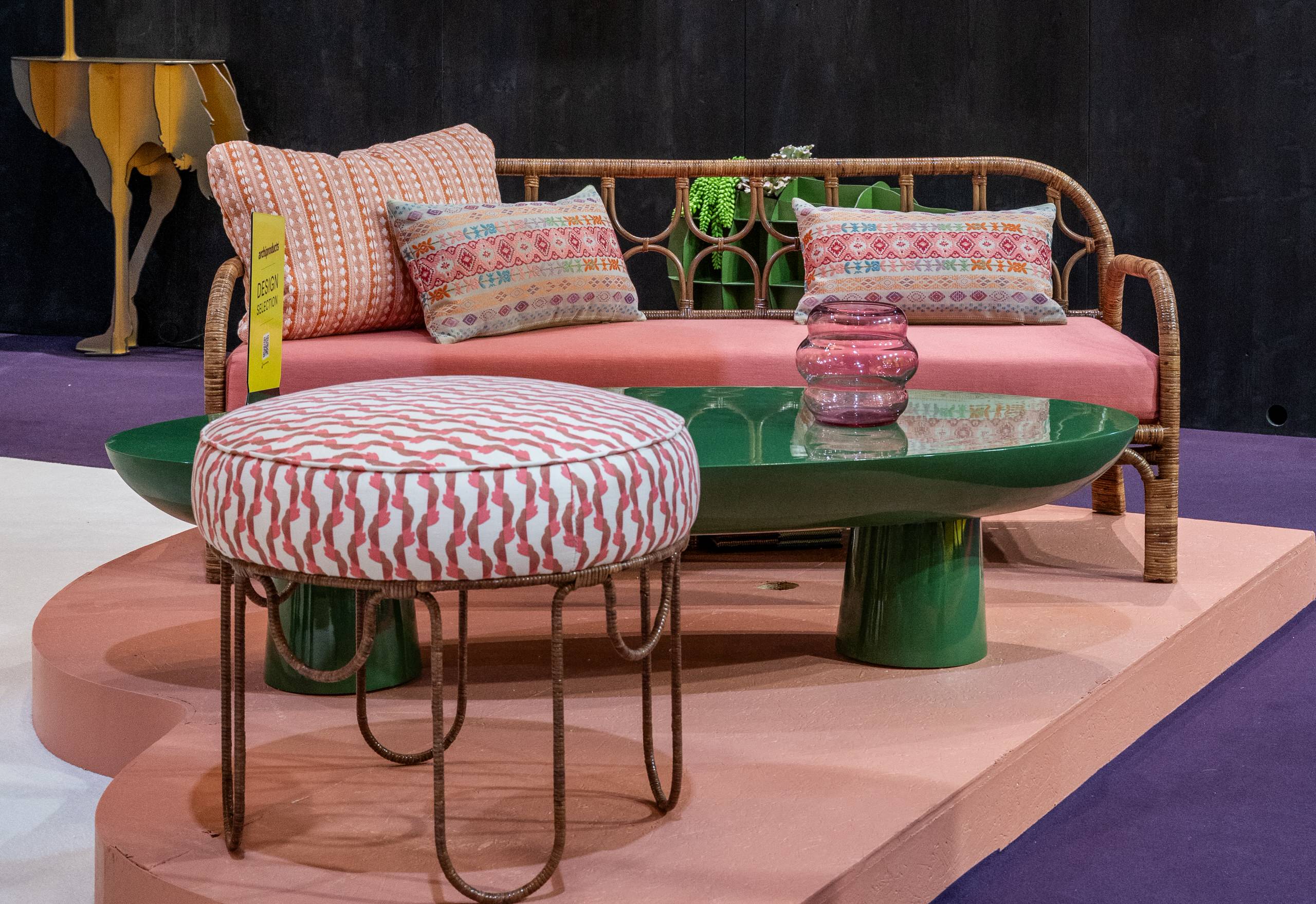 Miss Lo sofa, Tabata coffee table and Malone Pouf at Popus Editions