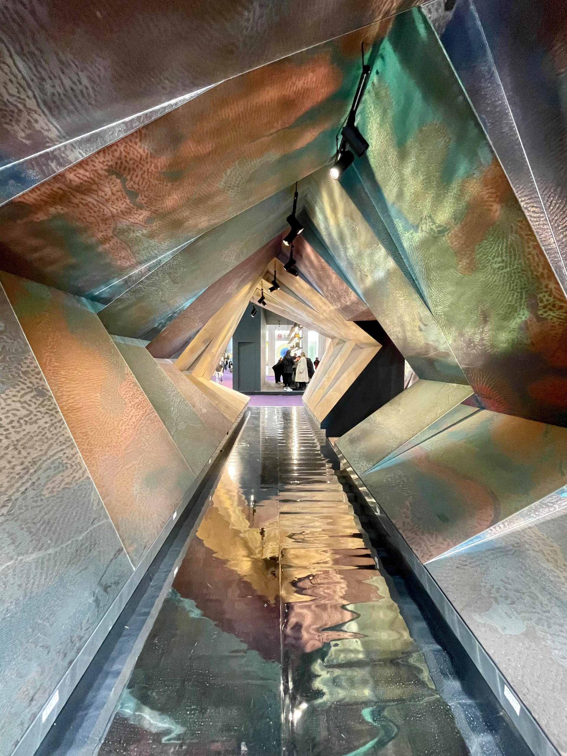 With their ever-changing reflections, iridescent shades are also a reference to the digital world — the other angle alluded to by the Tech Eden theme of the show. One of the most striking examples was this tunnel at the LCD booth showing coated walls with lustrous reflective surfaces.