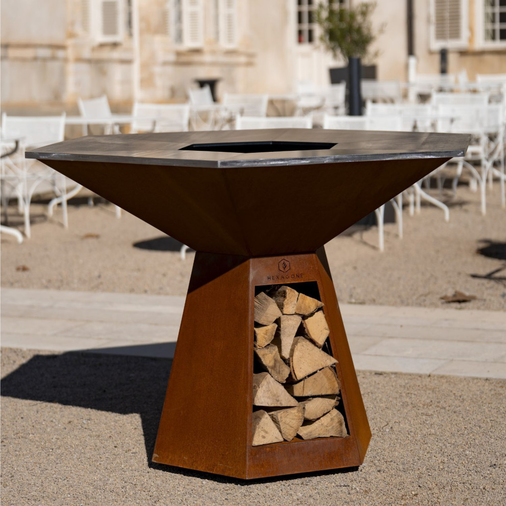 Cooking. The ever-increasing hybridization between indoors and out was also evident in kitchen offerings. New products designed for outdoor use allow for efficient cooking and festive gatherings. For example, Hexagone’s Grand Banquet brazier-griddle offers an impressive cooking capacity for up to 60 people.