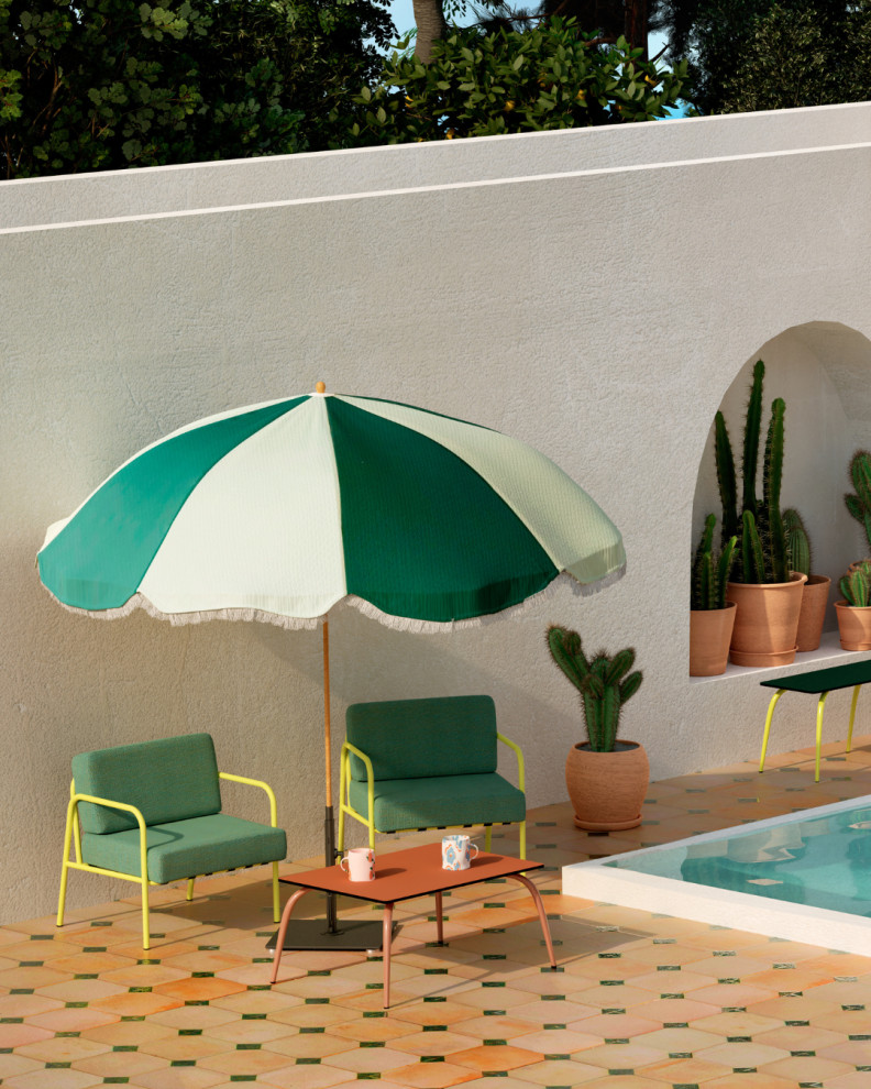 Shade. Outdoor shades, including umbrellas and shade sails, continue to evolve. Two brands in particular stood out at Maison & Objet: Podevache, with its fringed hippie-chic tilting umbrella, which filters UV rays without darkening the space, and American brand Business & Pleasure, which offers high-end shades with retro style.