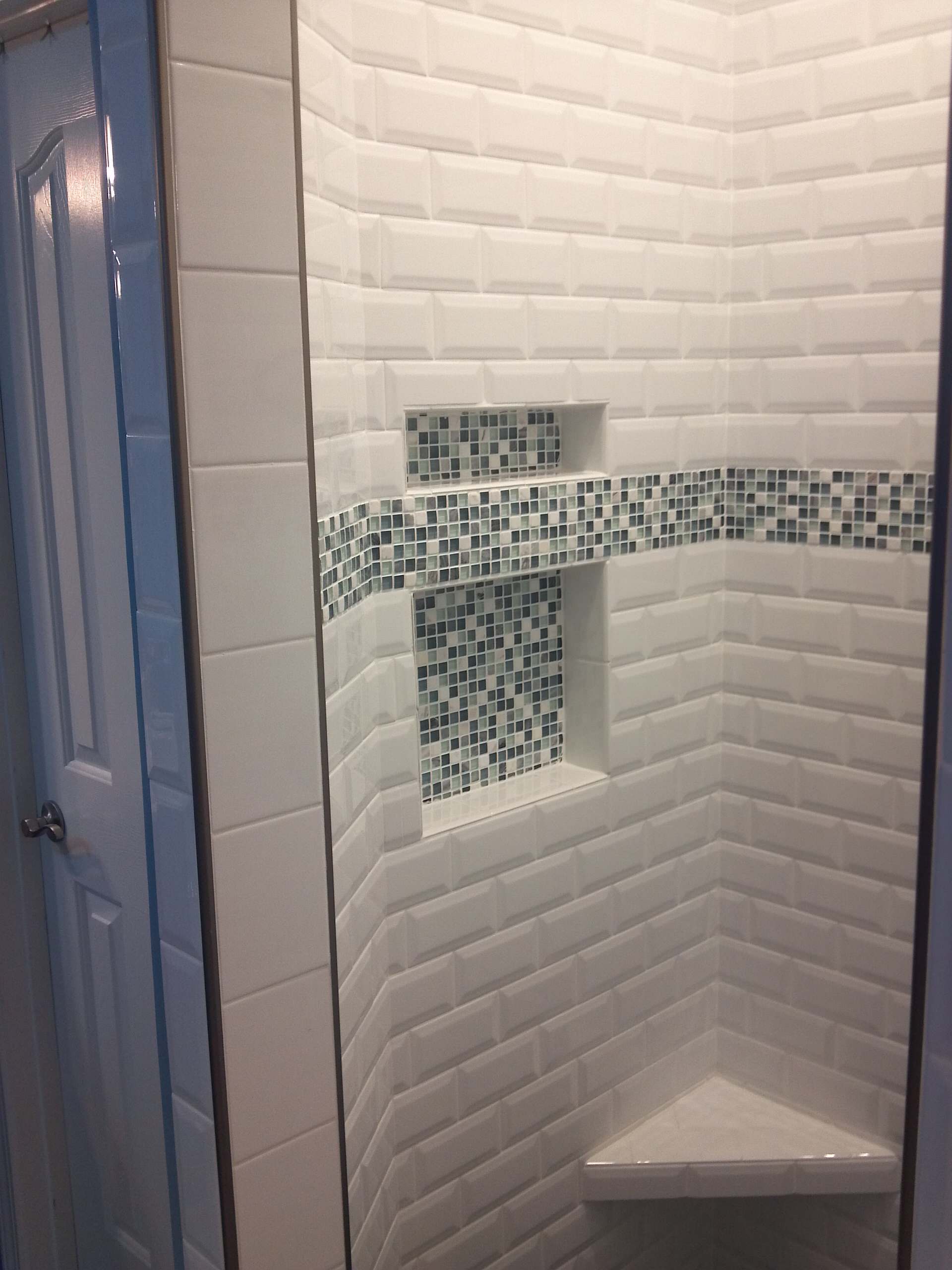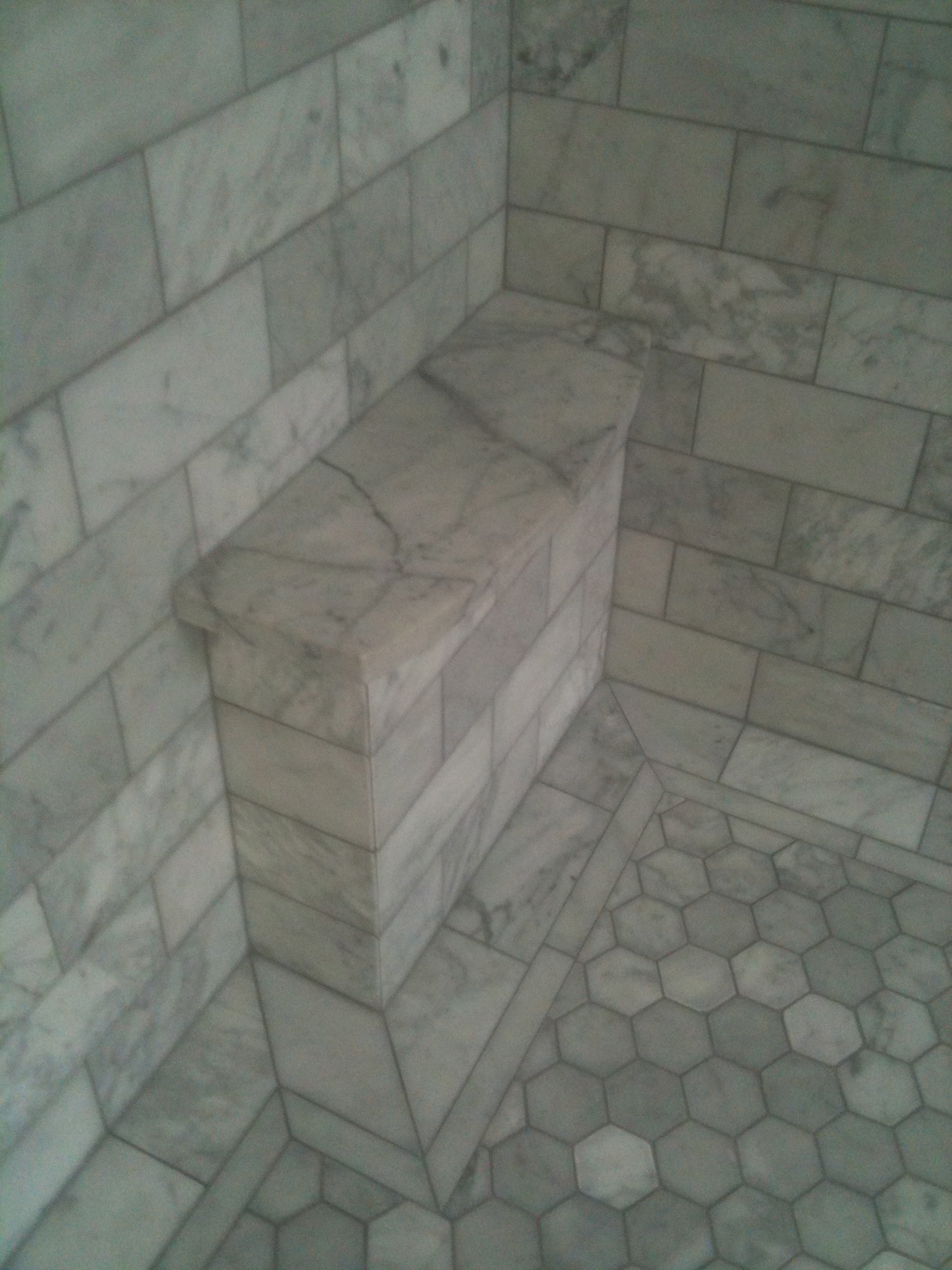 Another option for a floating bench is to tile it to match the rest of the shower.