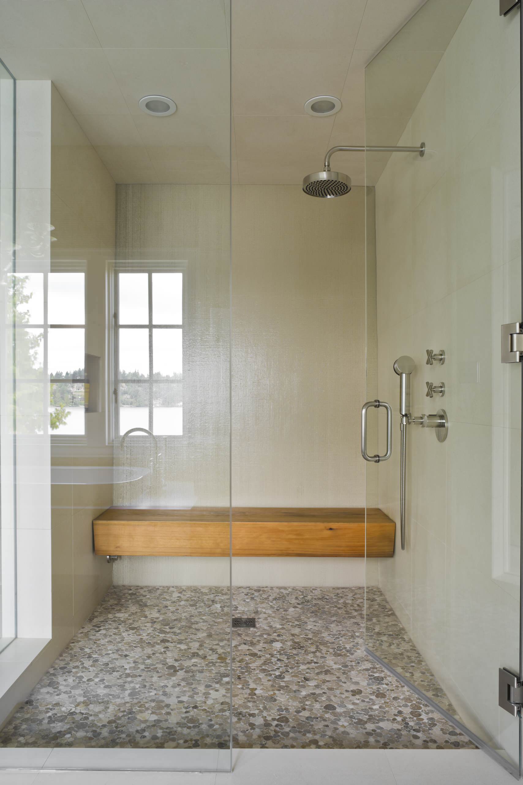Tip of the trade: “This teak fold-down bench is a Mr. Steam product rated for steam showers," notes Wilkins, "but we also use it in regular showers, as it is designed to withstand water penetration and moisture."