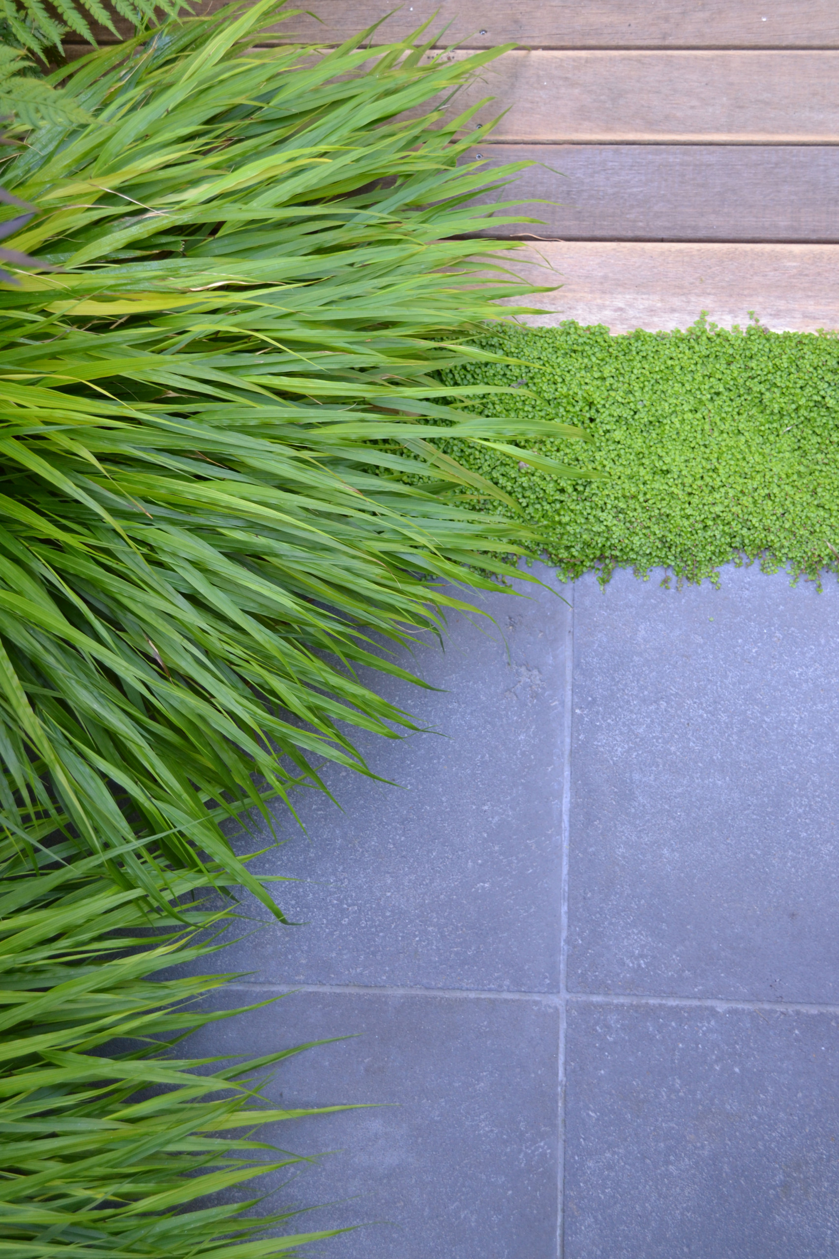 Baby’s tears (Soleirolia soleirolii, zones 9 to 11) creeps along between the decking and paving. “We use it quite a lot; it softens the interface,” Duffy says.