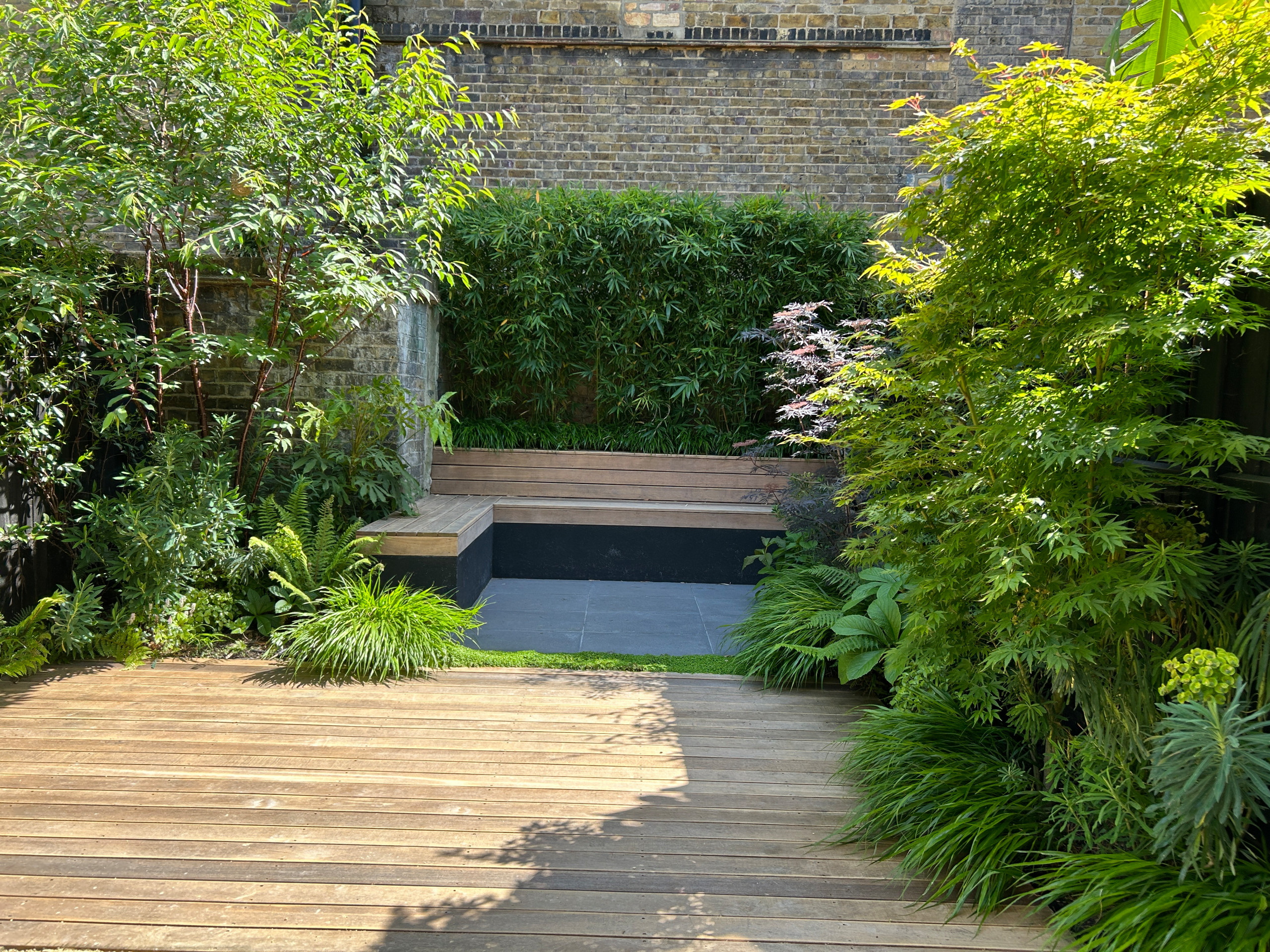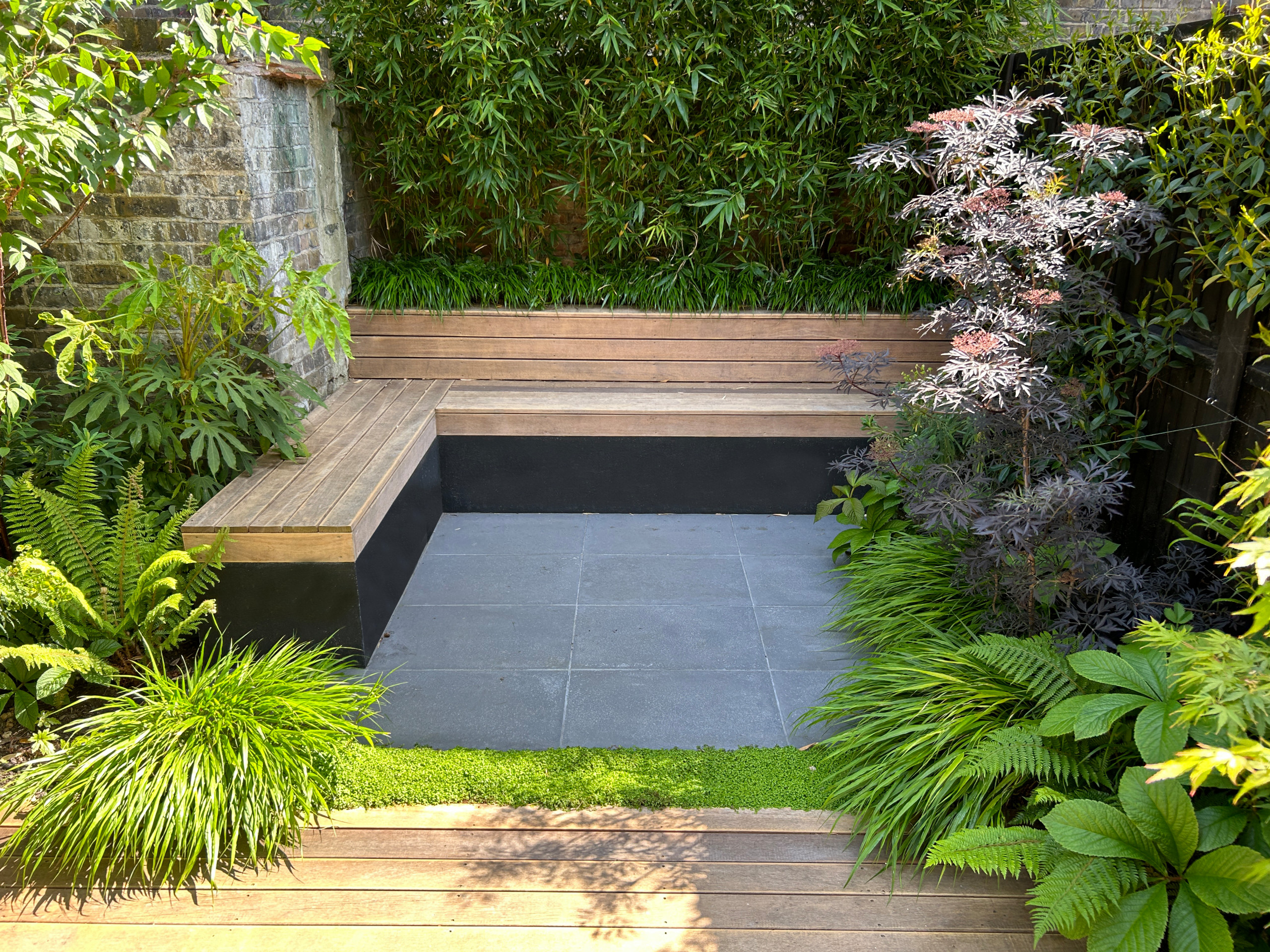 Landscape designers turn a small backyard in East London into a lush and inviting space for entertaining and relaxing