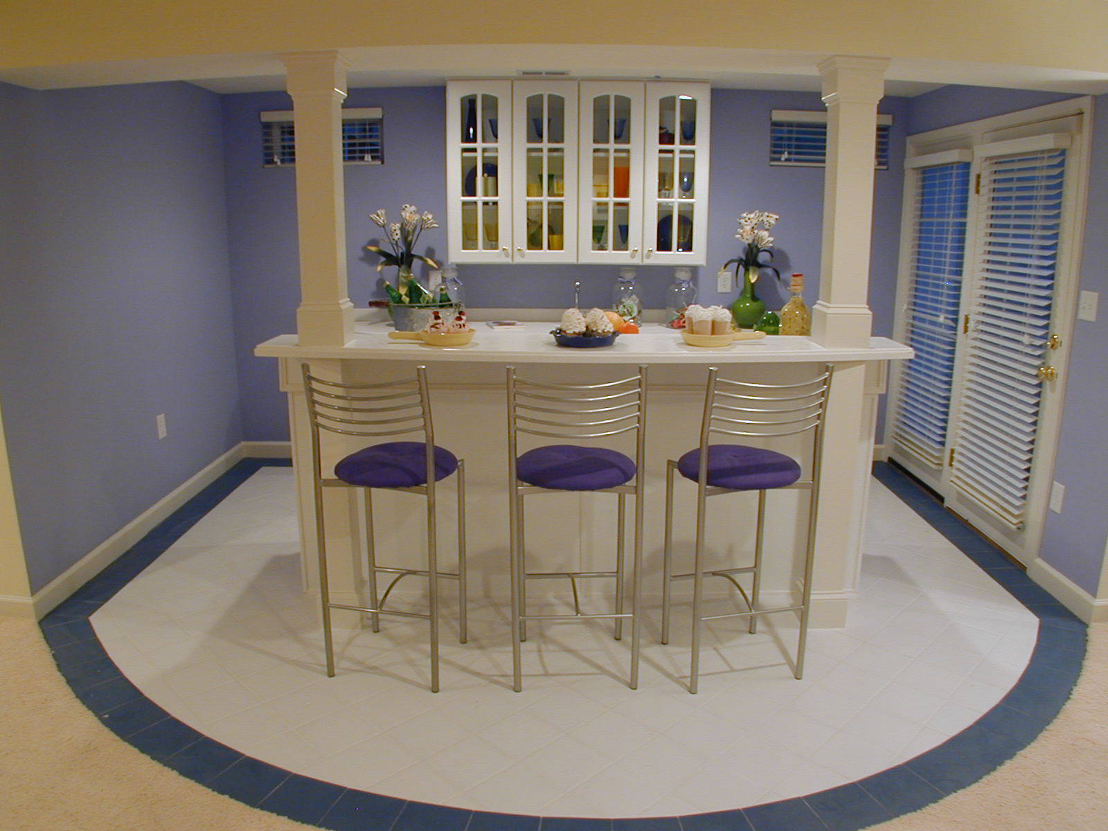 Need a way to brighten a basement space? Throw a splash of periwinkle on the walls! This shade is another close hit to how I perceive periwinkle, especially when you can see it against the deep purple of the seat cushions.