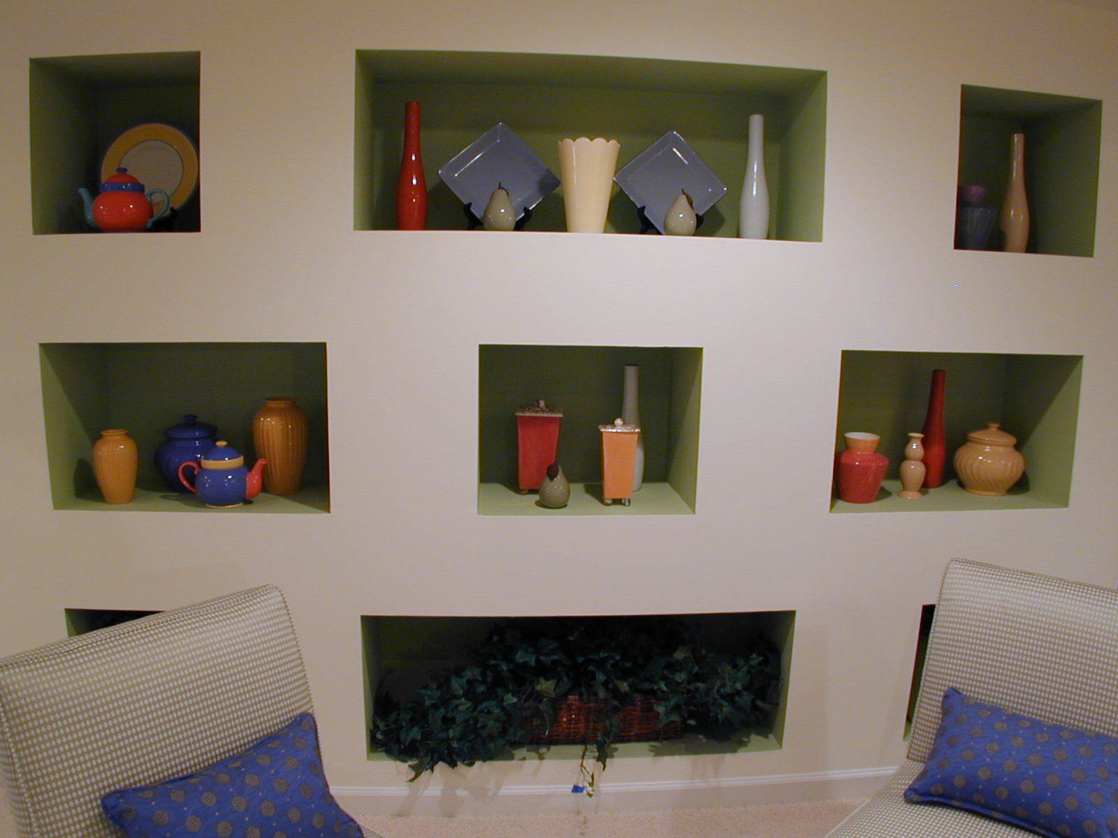 If you want your periwinkle to really pop, mix it in with some coral. The combo is playful and bold, and with a green backdrop and some gold touches as seen on these shelves, the look is really maximized!