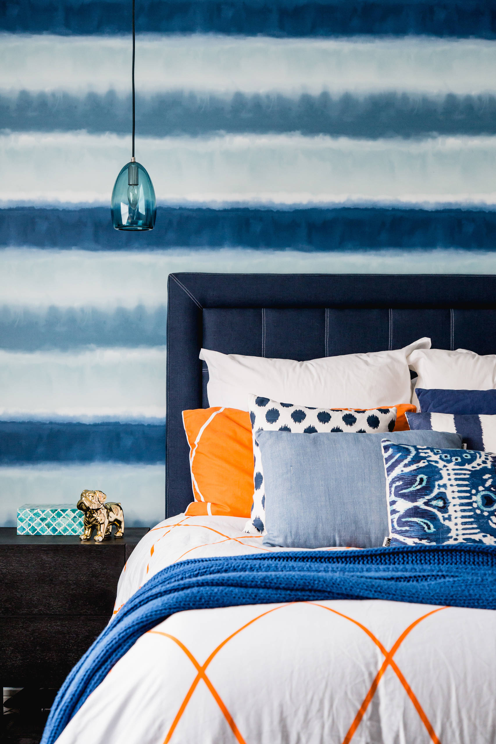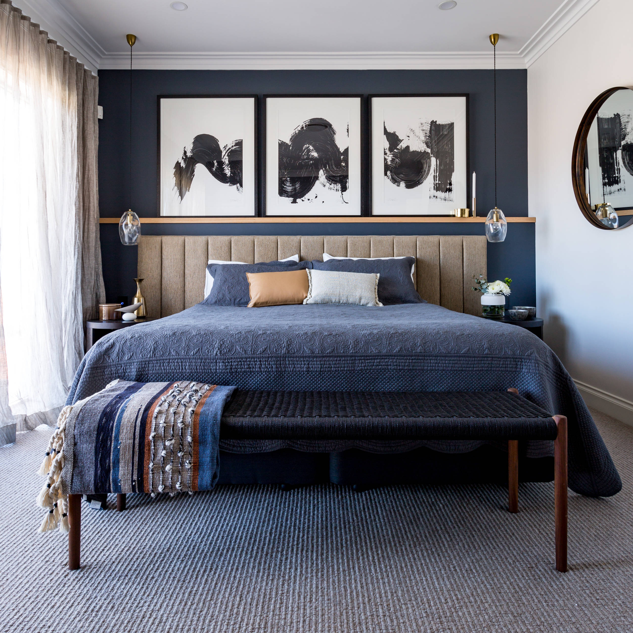 Blue has become the ‘new neutral’ of interior design in recent years, and dark blue has earned a name for itself as the darling of decoration. See for yourself how this cooling colour can town down a room, from a kitchen to a bedroom on the floor, or wall, or amp it up with a dash of drama.