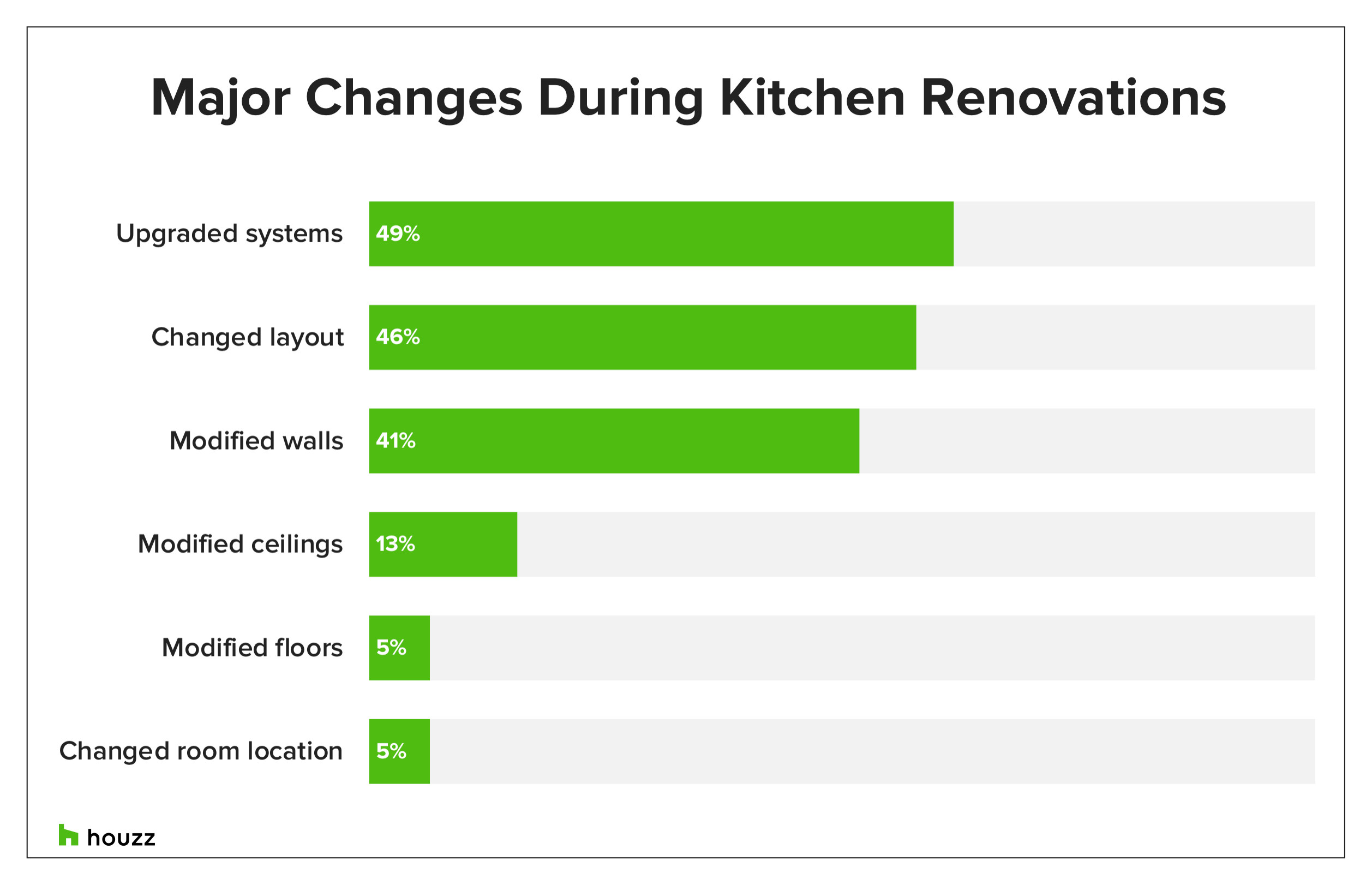 Many homeowners renovating their kitchens opt to change the room’s layout (46%), though the choice is less common than two years ago, when half of homeowners renovating their kitchens changed the layout.