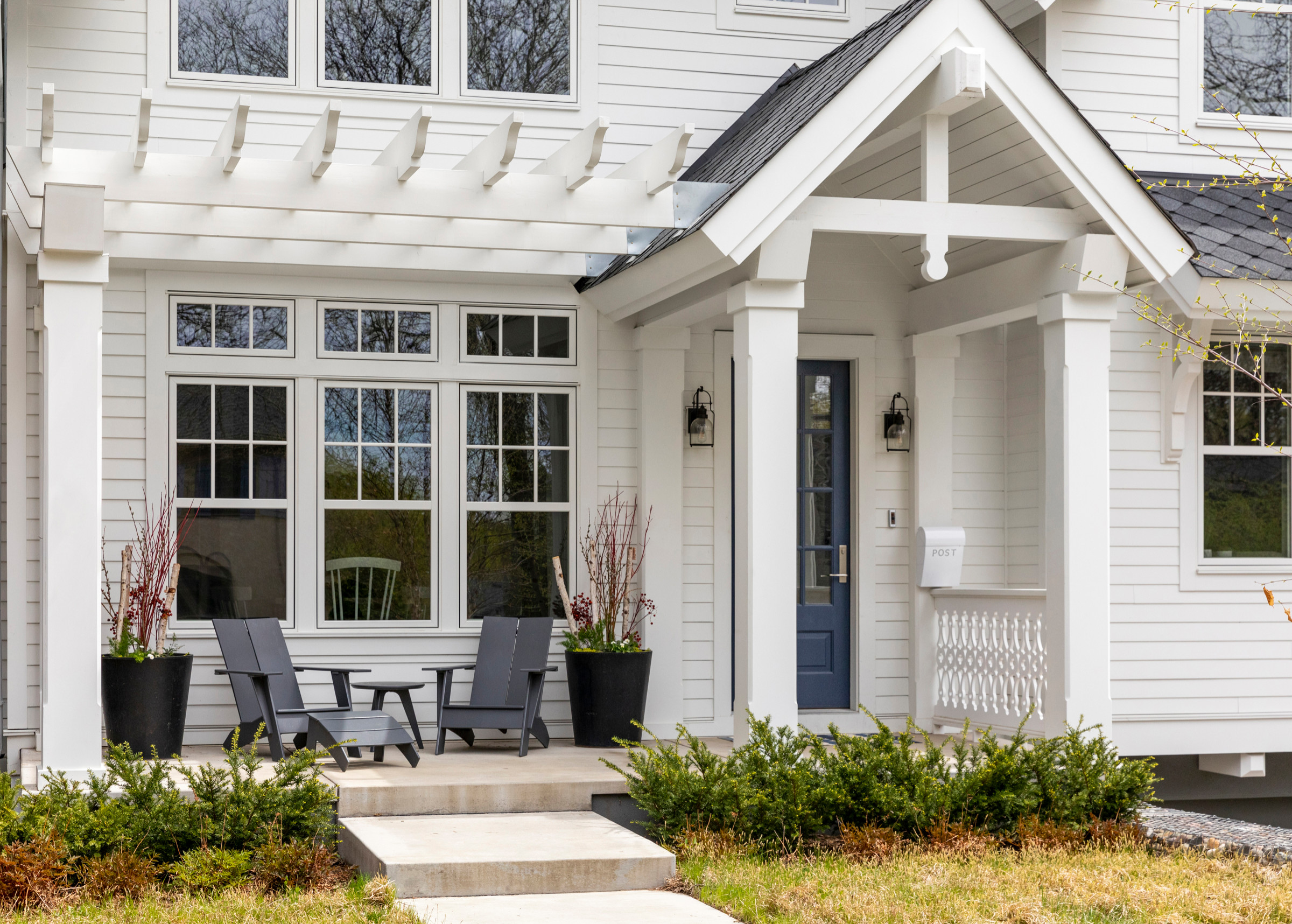 A well-lit porch looks far more inviting than a shadowy one, particularly as days grow shorter this time of year. Choosing standout lights that complement your home’s architecture can help an entryway feel festive and welcoming.