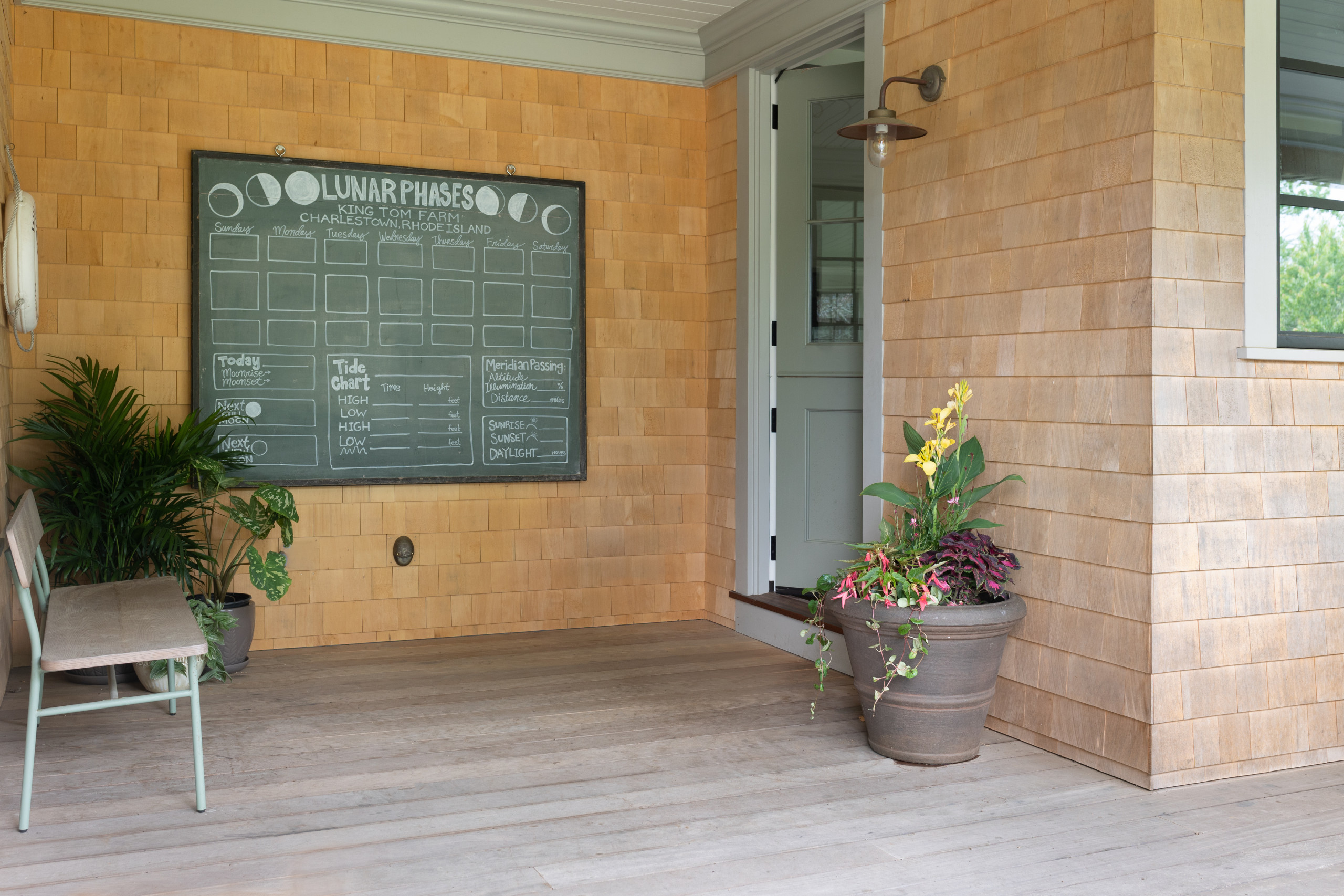 An oversize chalkboard can act as a place to keeps score for backyard games or share messages. For now, it’s used to track the lunar phases.