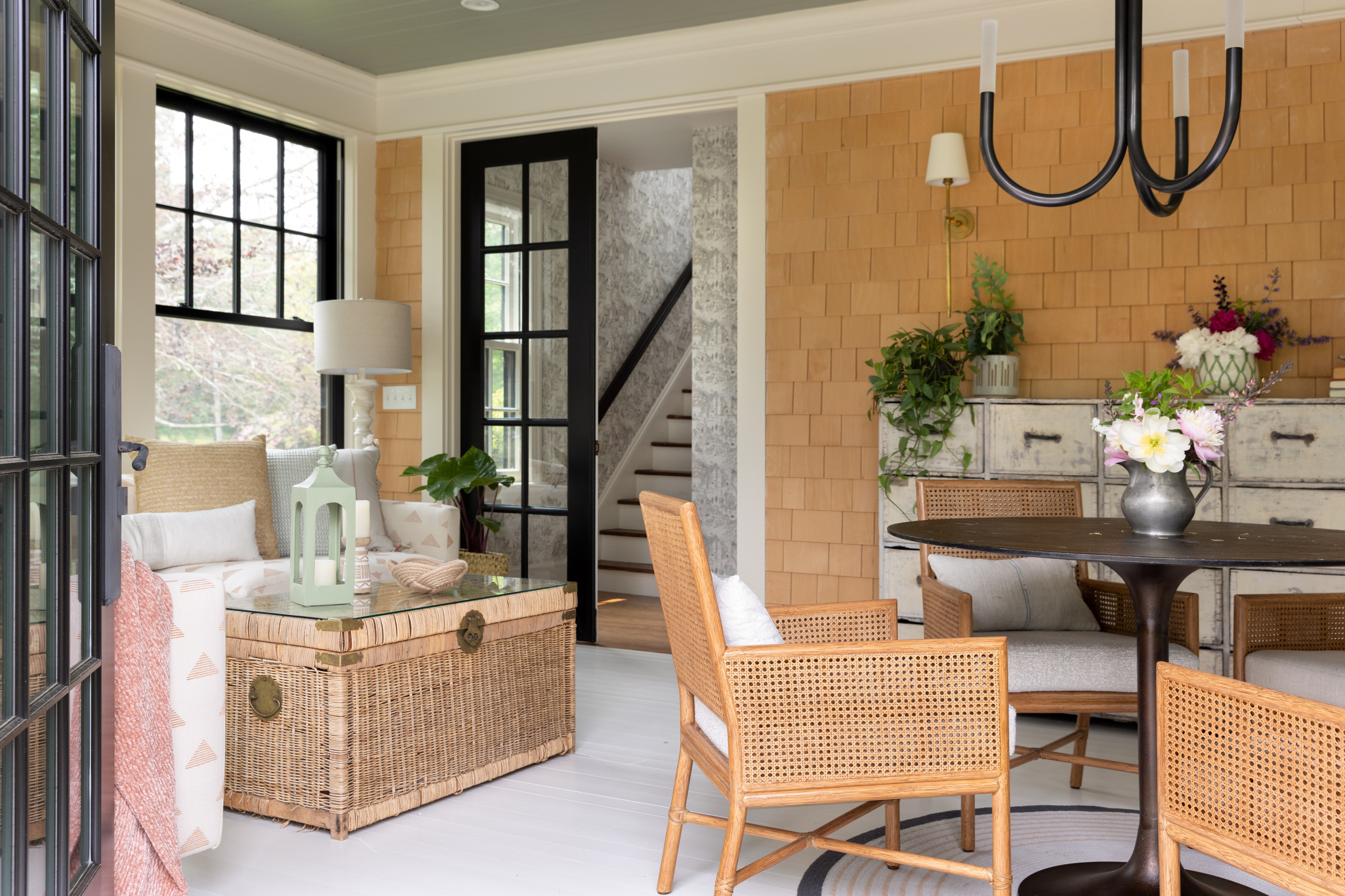 A family of four spends every summer gardening, cooking, exploring and entertaining at their beach house on Rhode Island’s southern coast. After renovating and redesigning portions of the 100-plus-year-old Dutch Colonial and picturesque property over the years, they were ready to enhance the home’s indoor-outdoor connection. The resulting reimagined sunroom and new back porch bridge the house and landscape and create more room for relaxed coastal living.
