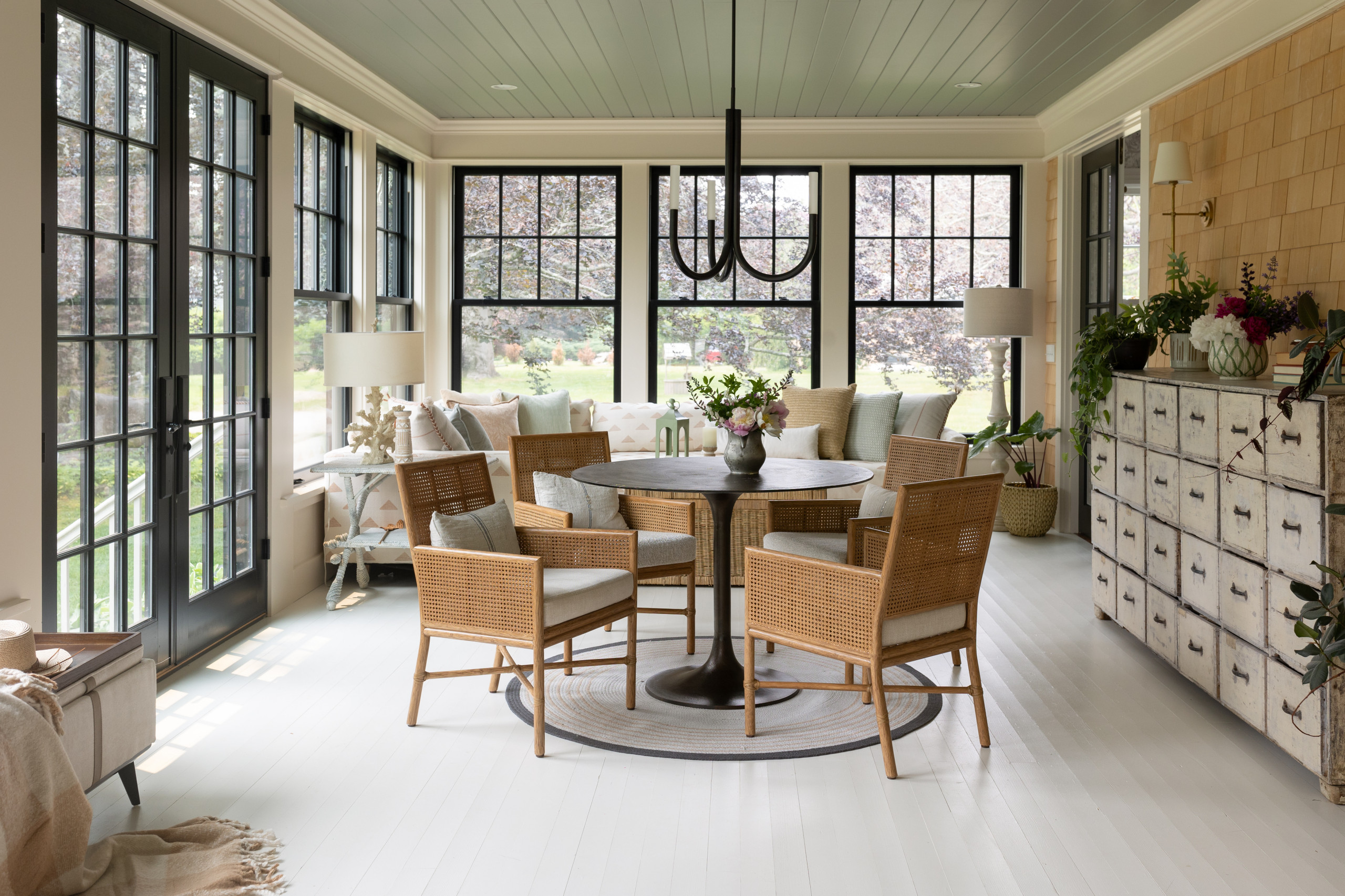 Amato kept the paint color palette subtle and simple. “I wanted it to feel refined but not fussy,” she says. She used a combination of colors that complement the new cedar shingles now and will continue to do so when they age to a soft gray.