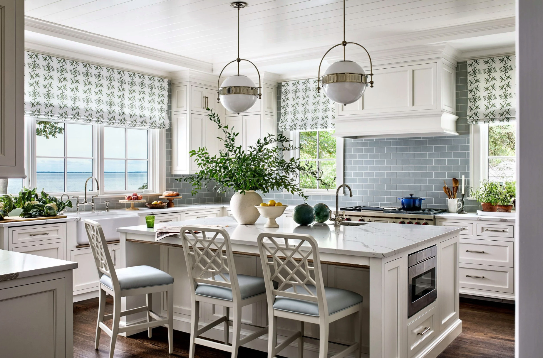 “It depends on what the kitchen needs,” Cavanaugh says. “While an uninterrupted countertop gives you large areas for service and seating, sometimes the size and scale of a kitchen require the water source or cooking element to be on the island. In either case, a great design can afford the homeowner optimized use and beautiful design opportunities.”
