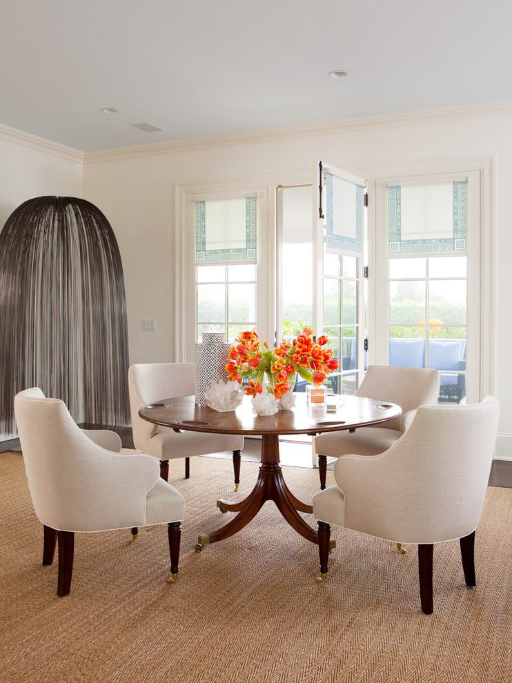 This roller shade in a room by Tom Stringer Design Partners is finished with a vintage-stye scallop, proving that fancy trims are not just for curtains. The window treatment also illustrates another reason to use rollers: Sometimes a sleek window covering is needed for a tighter space.