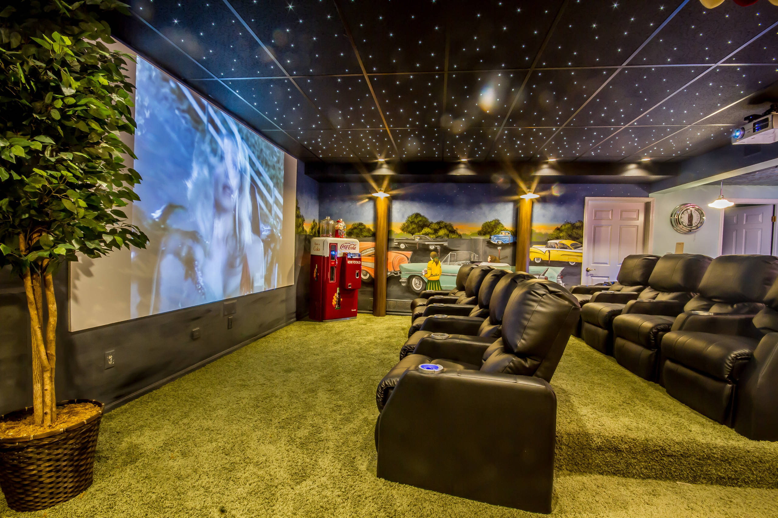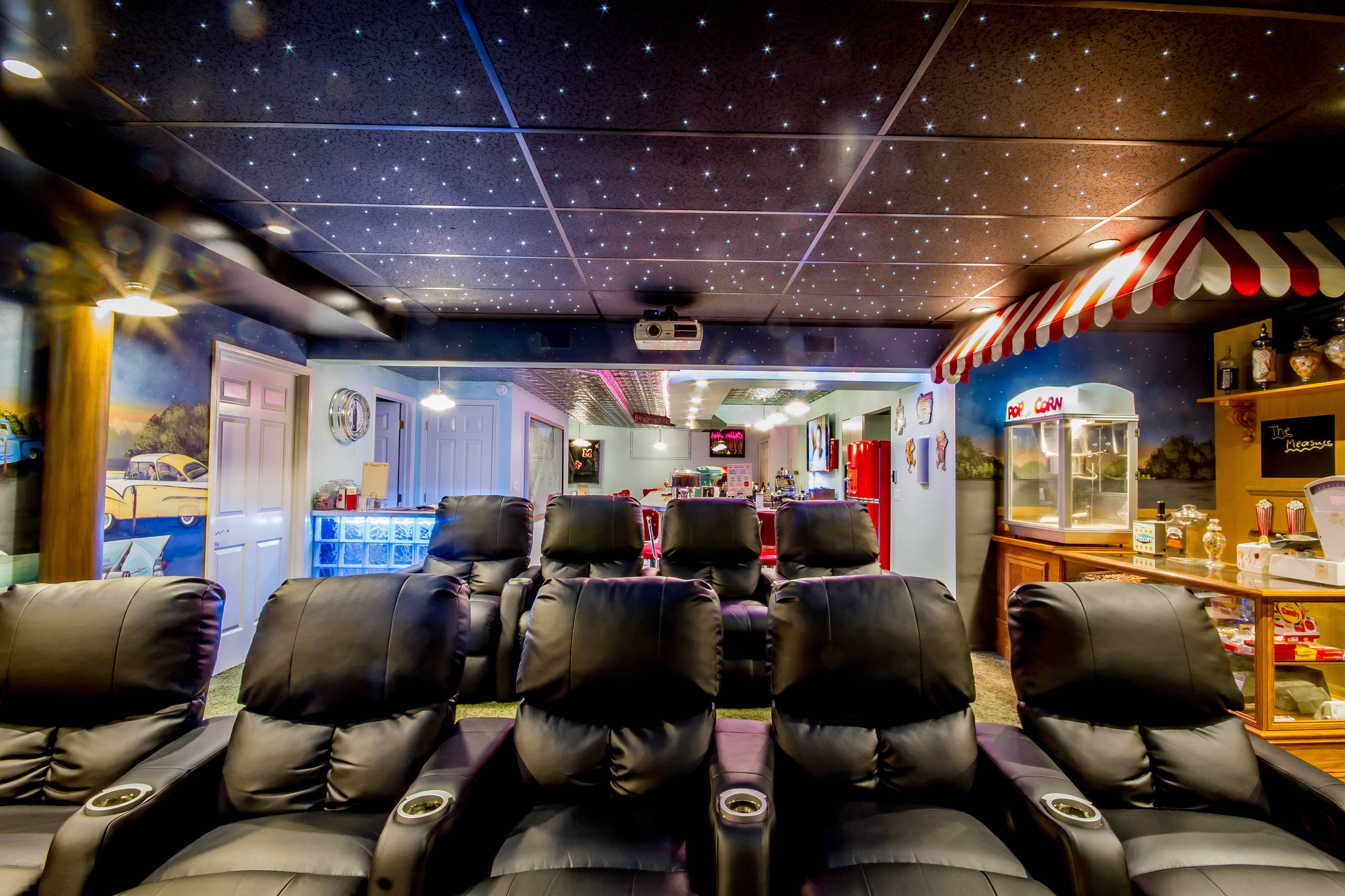 A Michigan couple go for all-out nostalgia in their basement with an entertainment zone for food and flicks