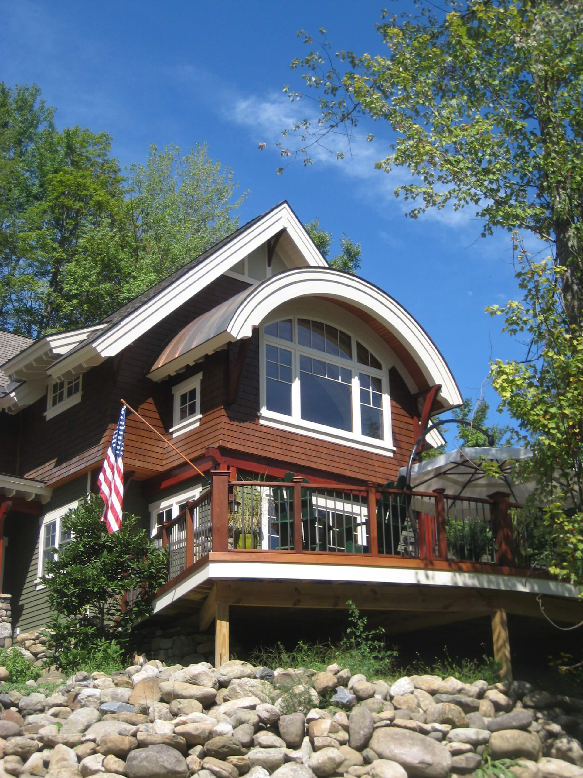 Segmental vaults can find a place in traditional designs as well. This New York addition to a Shingle-style house cozily combines a segmental vault into the gabled end of the original structure. With the segmental vaulted roof, the addition gets a dramatic and beautiful arched window and an unique interior.