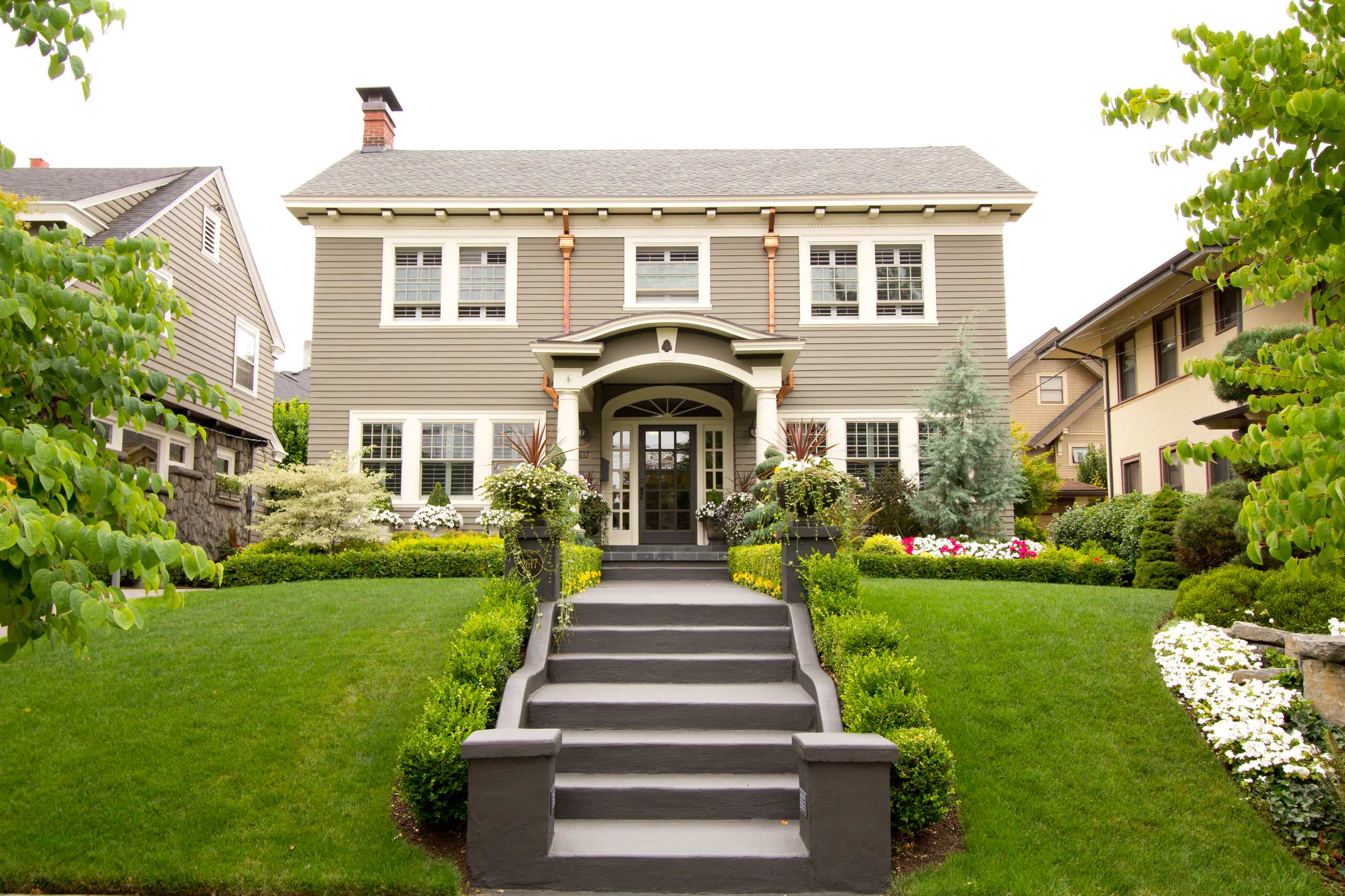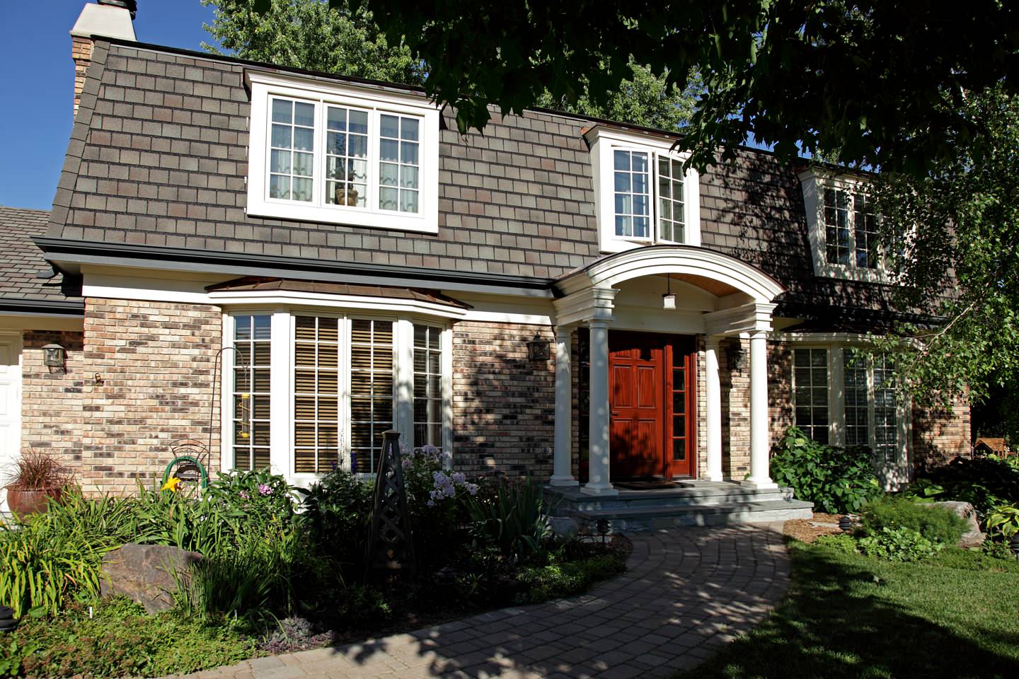 Most, though not all, colonial revival homes are symmetrical (as the one shown is), with classically detailed entrance porches and grouped double-hung windows. Differences between classically based houses can be subtle, and suburban developments often mimic authentic characteristics. Like the Georgian, this style is very common throughout the United States, and is still being replicated.