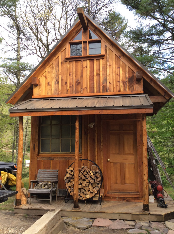 Project details: The homeowner designed and built this timber-frame structure himself. The project began in October 2019, before the pandemic, and the carpentry work is ongoing. The stained wood used for the exterior was locally sourced from small independent wood mills and includes white pine, eastern hemlock and spruce. The homeowner opted for a board-and-batten exterior to match that of the main house. “I didn’t want the ADU to look like new construction,” Rodriguez-Velez says. “The interior remains a blank canvas that will incorporate artwork, antiques and handmade cabinetry. The ADU will have an eclectic artist-cabin flair and will serve as a winter retreat.”