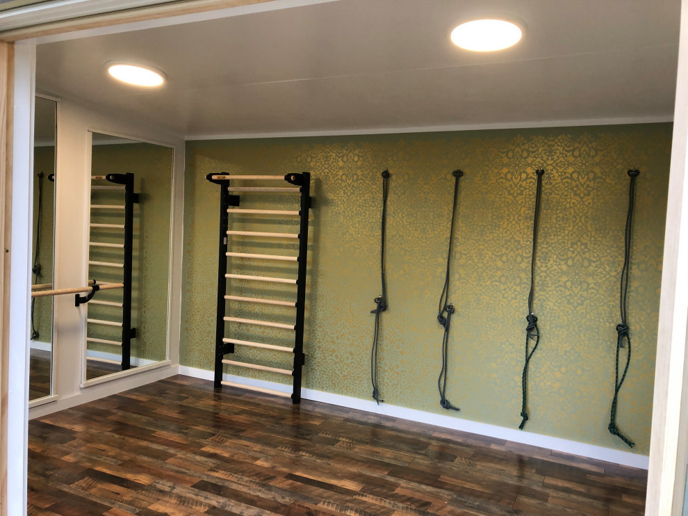 Lisa uses the studio to teach virtual yoga classes for a local gym, Planet Granite, and she also teaches private yoga and does personal training at an appropriate social distance with clients that are previously screened.