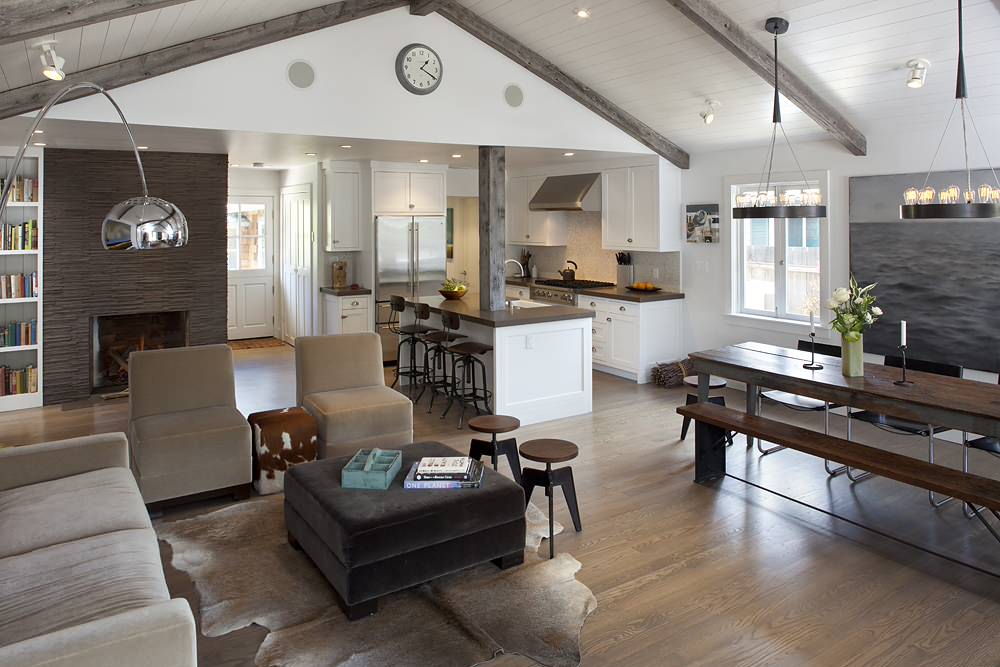 This Mill Valley, California, living room by Artistic Designs for Living features rustic farmhouse details, midcentury influences and casual contemporary furnishings, creating a relaxed yet stylish look full of positive tension. It won a 2012 Best of Houzz design award.