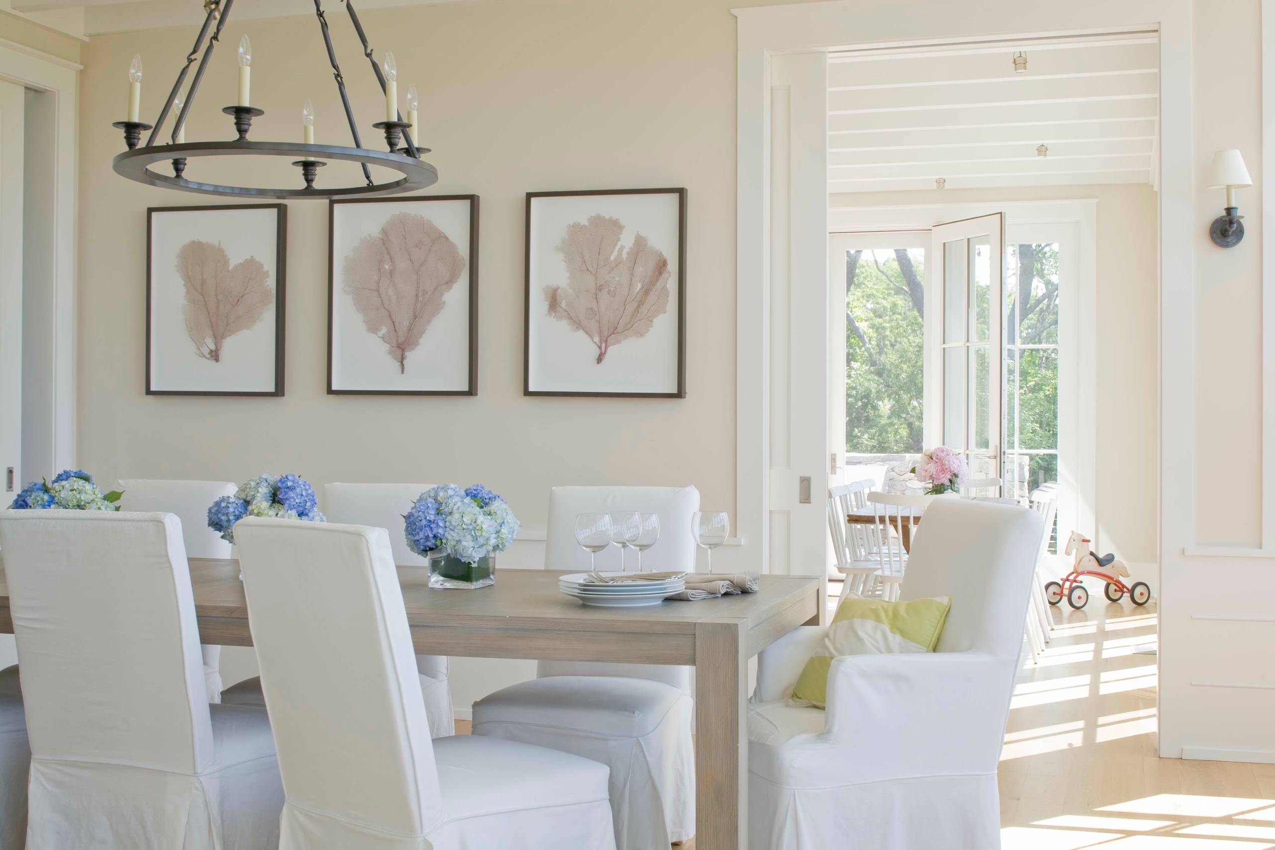 6. Style your dining room table. The dining room is often a blind spot in decorating the home. Between dinners, a large dining table can look bare and uninviting, so styling it up with visitors in mind can increase the appeal. An oversize arrangement can look too stiff and formal, so try lining up a series of smaller vessels down the center of the table instead.