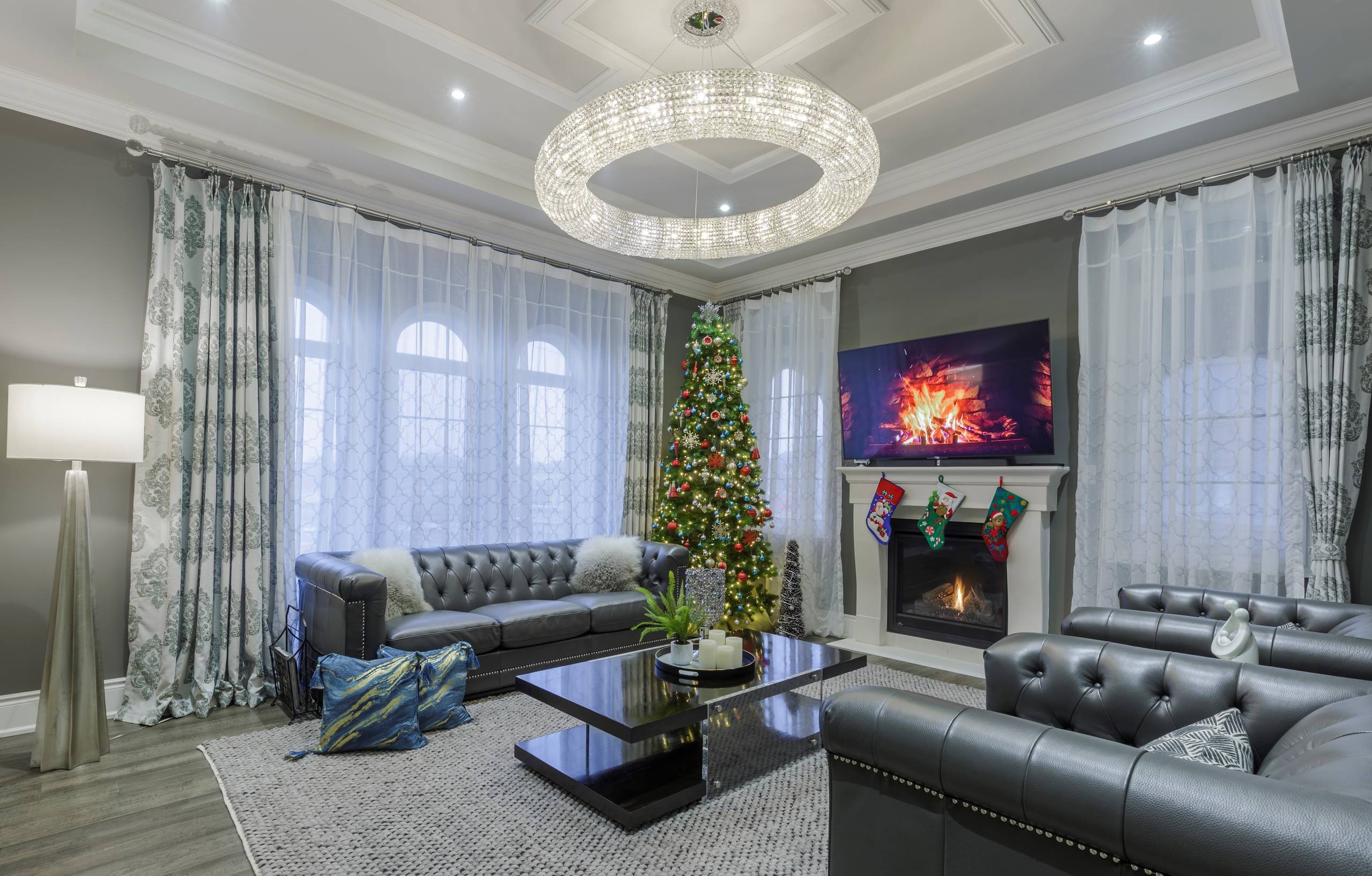 A tree’s setting in your home can make a difference as well. In this Toronto home styled by Gta Fine Interiors Design and Staging, a traditional tree takes on a sleek vibe in a room with a high ceiling, a dramatic light fixture and other contemporary touches. Where do you set up your tree at home, and what makes that spot special?