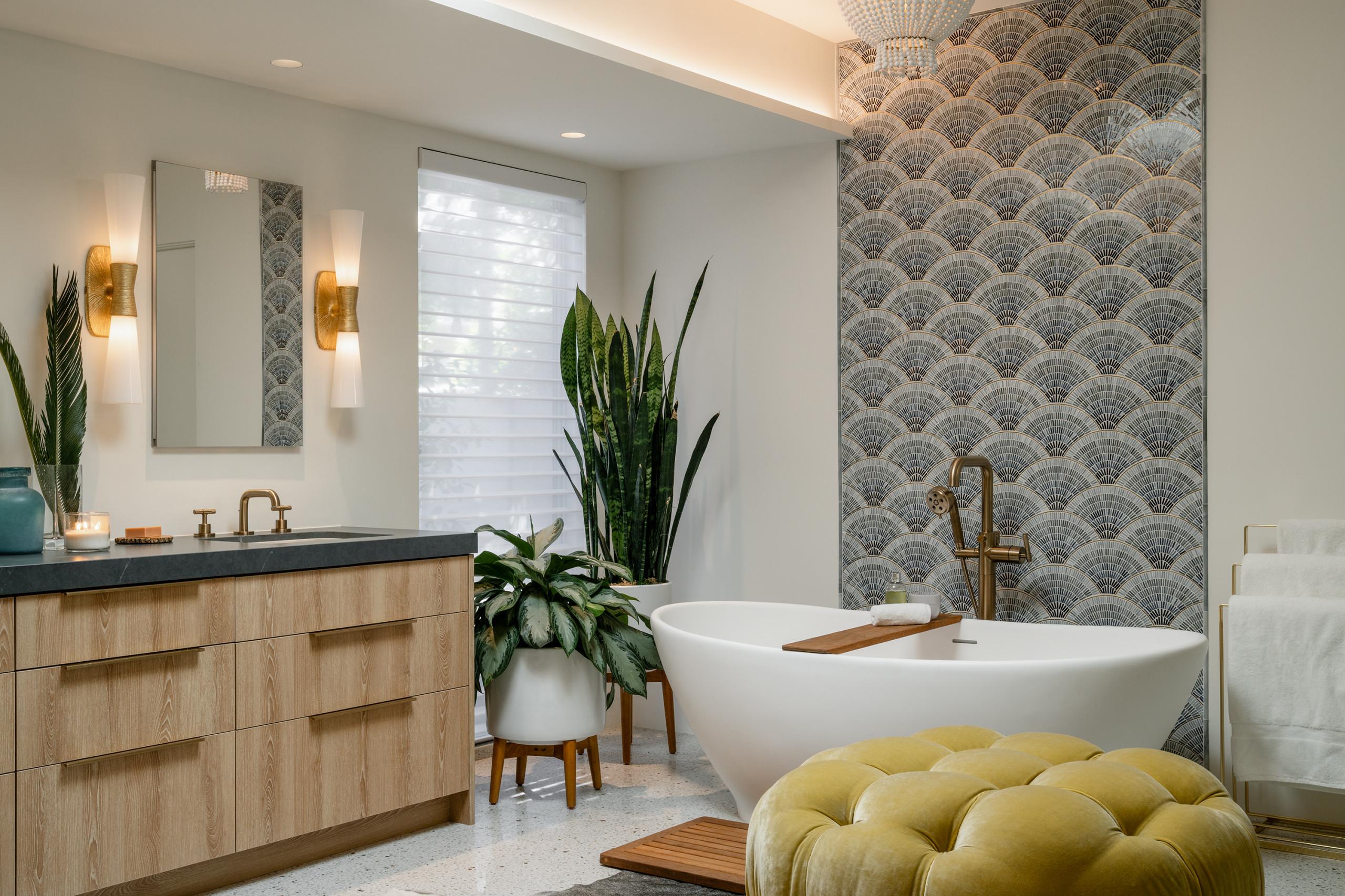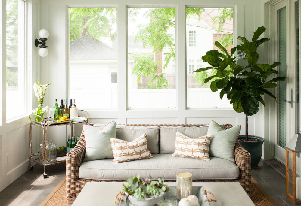 You don’t always need to use traditional indoor pots for your houseplants — why not try a rectangular planter, an urn or an outdoor container? Just be sure to use a tray beneath the pot or planter to protect your surfaces from water damage.