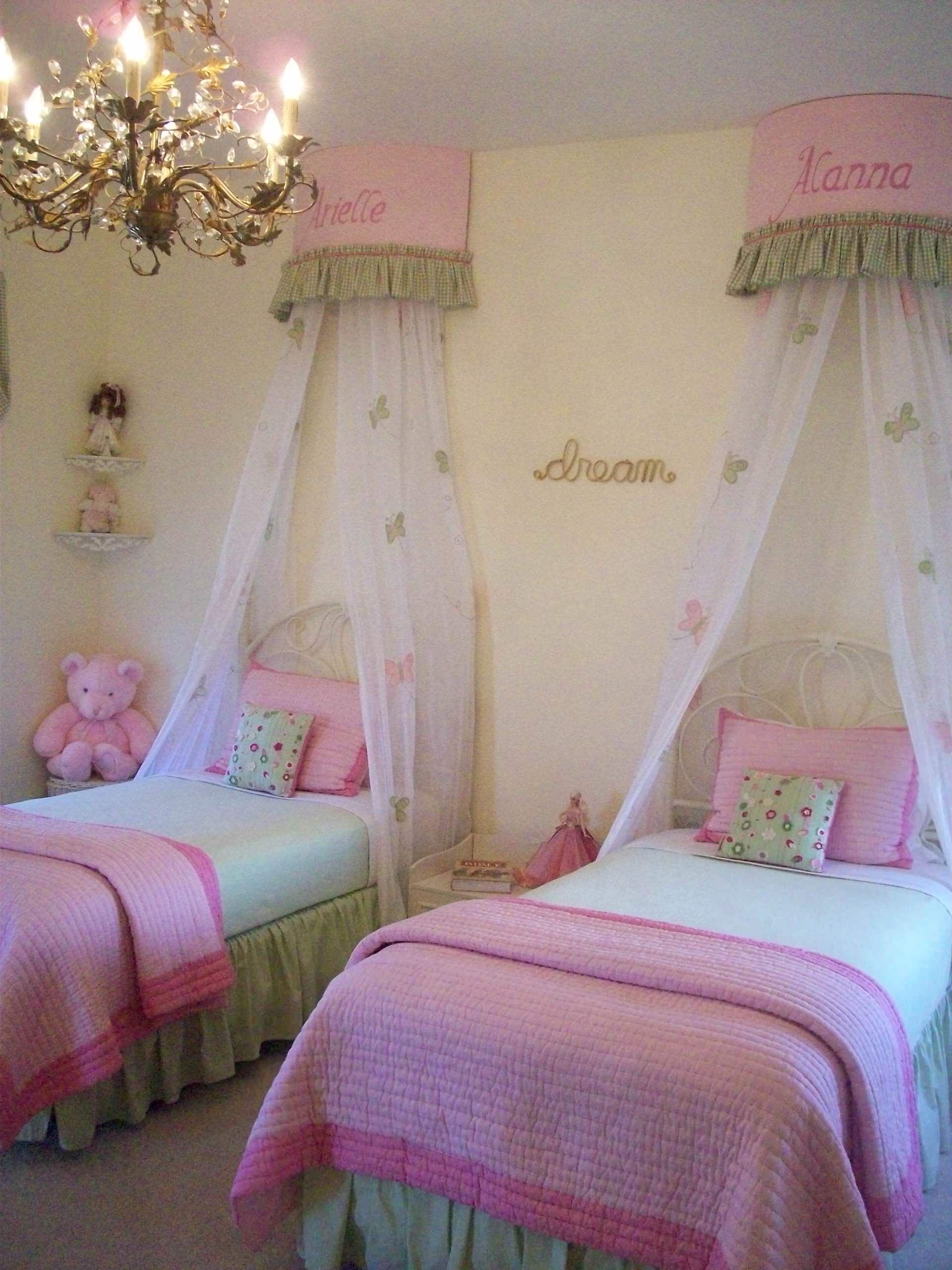Two of my four granddaughters are twins, which helps explain my reaction to this room. I don’t know whether to swoon or to covet. But I definitely yearn for the chandelier, which is the single item that takes this delightful bedroom to another level.