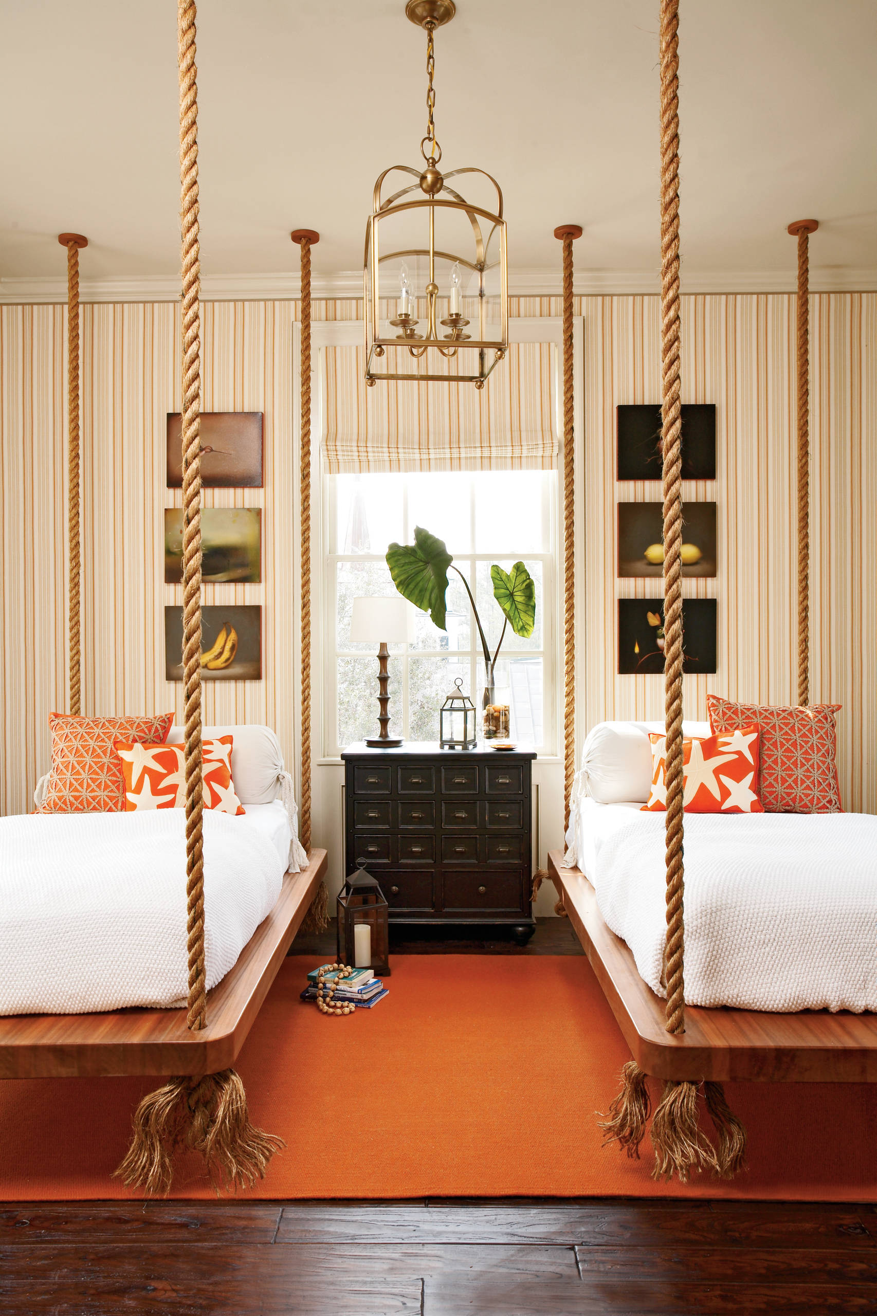 Or these rope beds? Every child in the neighborhood would want to take them for a test drive. (The star pillows are a nice touch, too.)