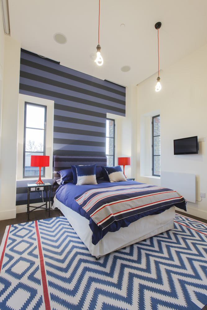 Or go for stripes! This striped wall combined with the geometric rug is a bit brazen — but then, when has a child’s room ever been about subtlety?