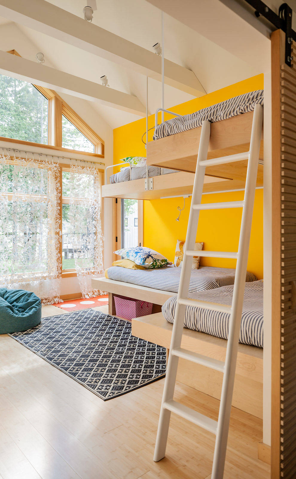 These sunny yellow bolsters really add punch to this Savannah, Georgia, sleeping loft.