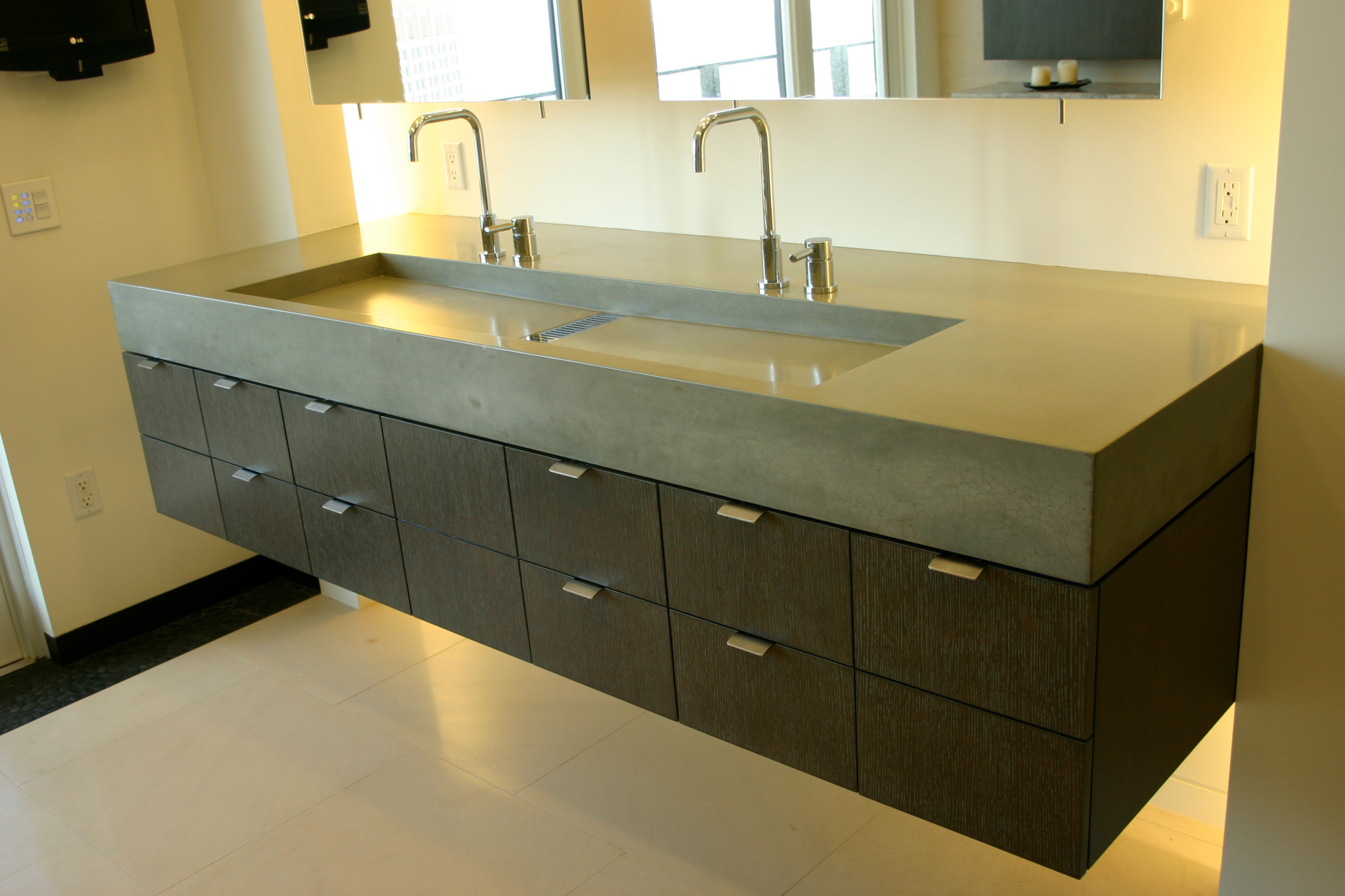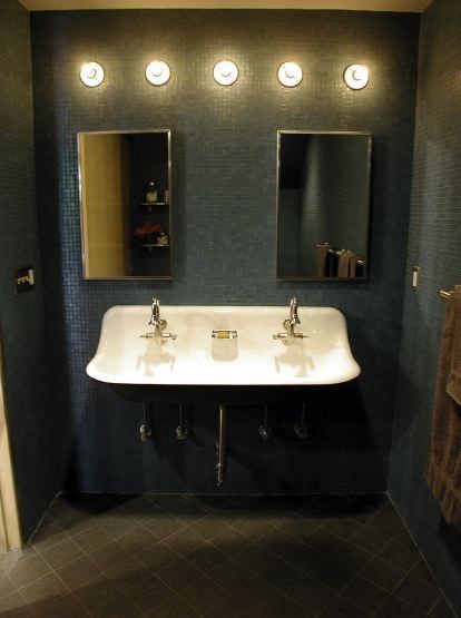 A utility wash sink, like Kohler's Brockway, is brilliant for incorporating the traditional double vanity in an untraditional way.