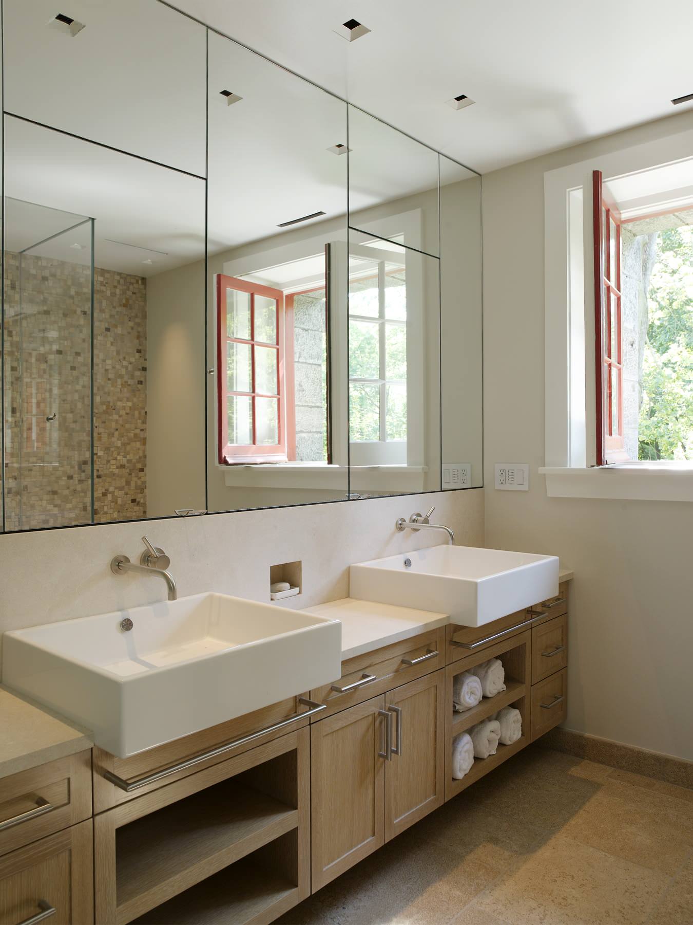 If you love a certain design for a sink, like this organically circular vessel sink, a double vanity is a great opportunity to celebrate your admiration by installing two of it.