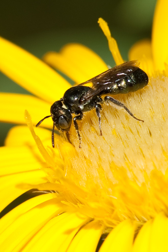 Shown: A female small carpenter bee on hairy goldenaster (Heterotheca villosa)
