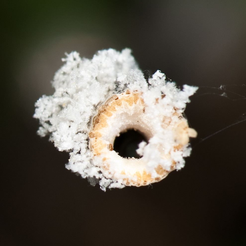 Shown: The end of a small perennial plant stem that is being excavated by a small carpenter bee