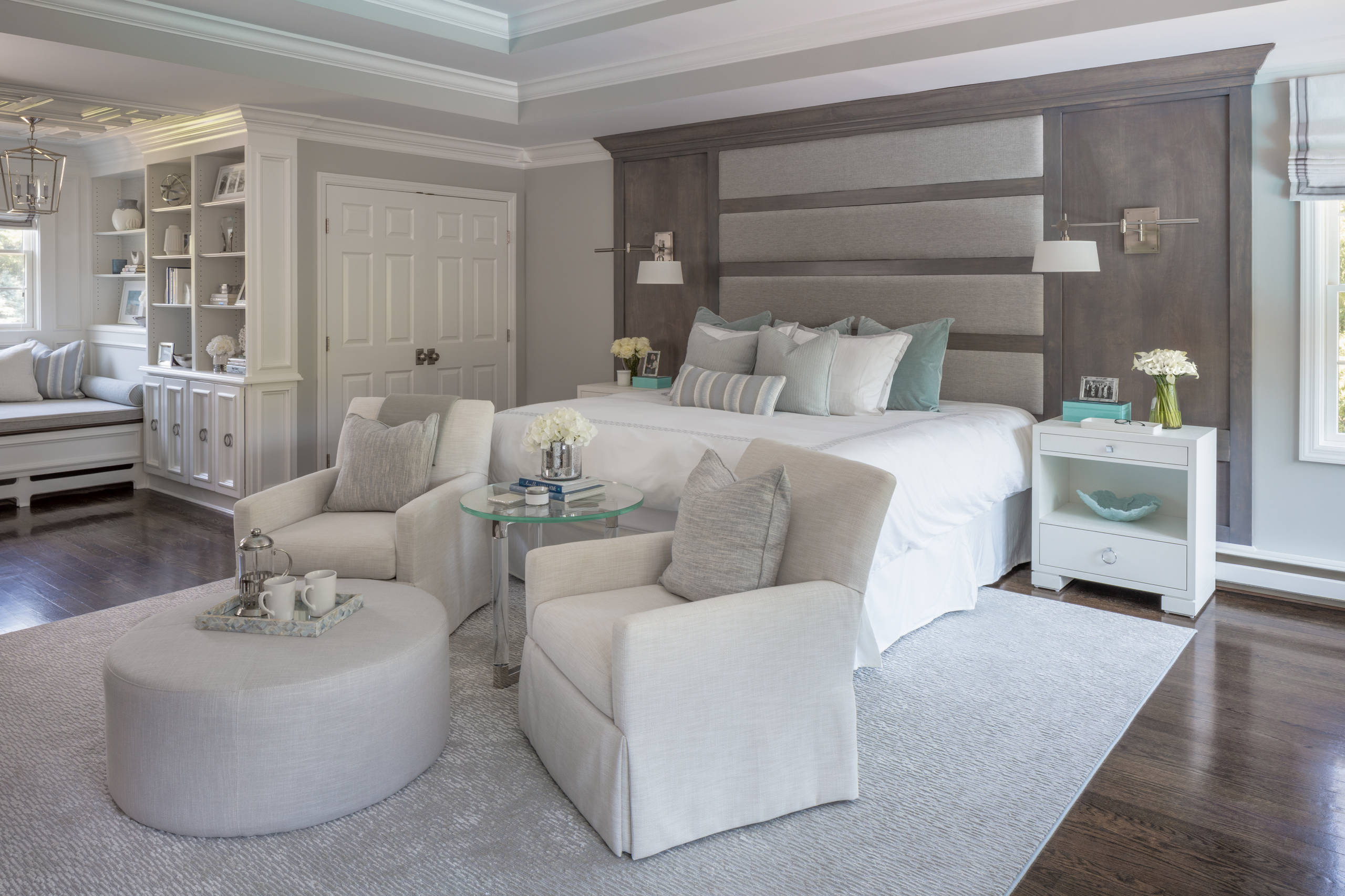 A designer transforms a Long Island, New York, master bedroom into a light and airy space made for relaxation