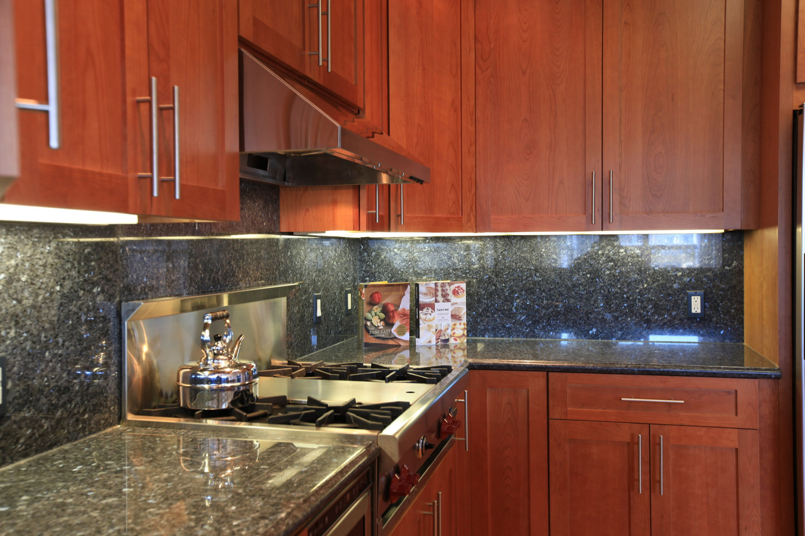 6. Smart accessories. I cleared this kitchen counter of appliances, spice racks, towels, and cooking utensils and left only a few things: a couple of cookbooks and a shiny tea kettle. Random? Not at all. The gourmet cookbooks give the impression that this kitchen is built for serious cooking. It's called "branding" — and it's what advertisers bombard you with every day. You're advertising your home, so buyers need not know that your cooking skills are actually a fire hazard to your own kitchen. The cookbooks here say culinary creations might have been whipped up here.